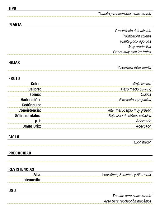 • - Rodríguez del Rincón A. et al (1995, reed. 2001) Comportamiento de variedades de tomate para concentrado en las vegas del Guadiana. Secretaría Gral. Técnica, Cons. Agric. y Medio Ambiente, Junta de Extremadura.