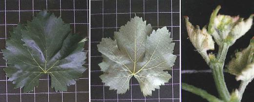 • imagen ilustrativa de la hoja tanto haz como envés y pámpano joven.