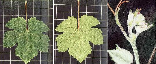 Hoja (haz y envés) y pámpano joven