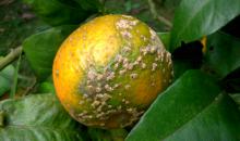 Las plantas infectadas con citrus canker tienen lesiones características en hojas, tallos y frutos, con márgenes levantados, marrones, empapados de agua, frecuentemente con un halo amarillo o efecto de anillo alrededor de la lesión