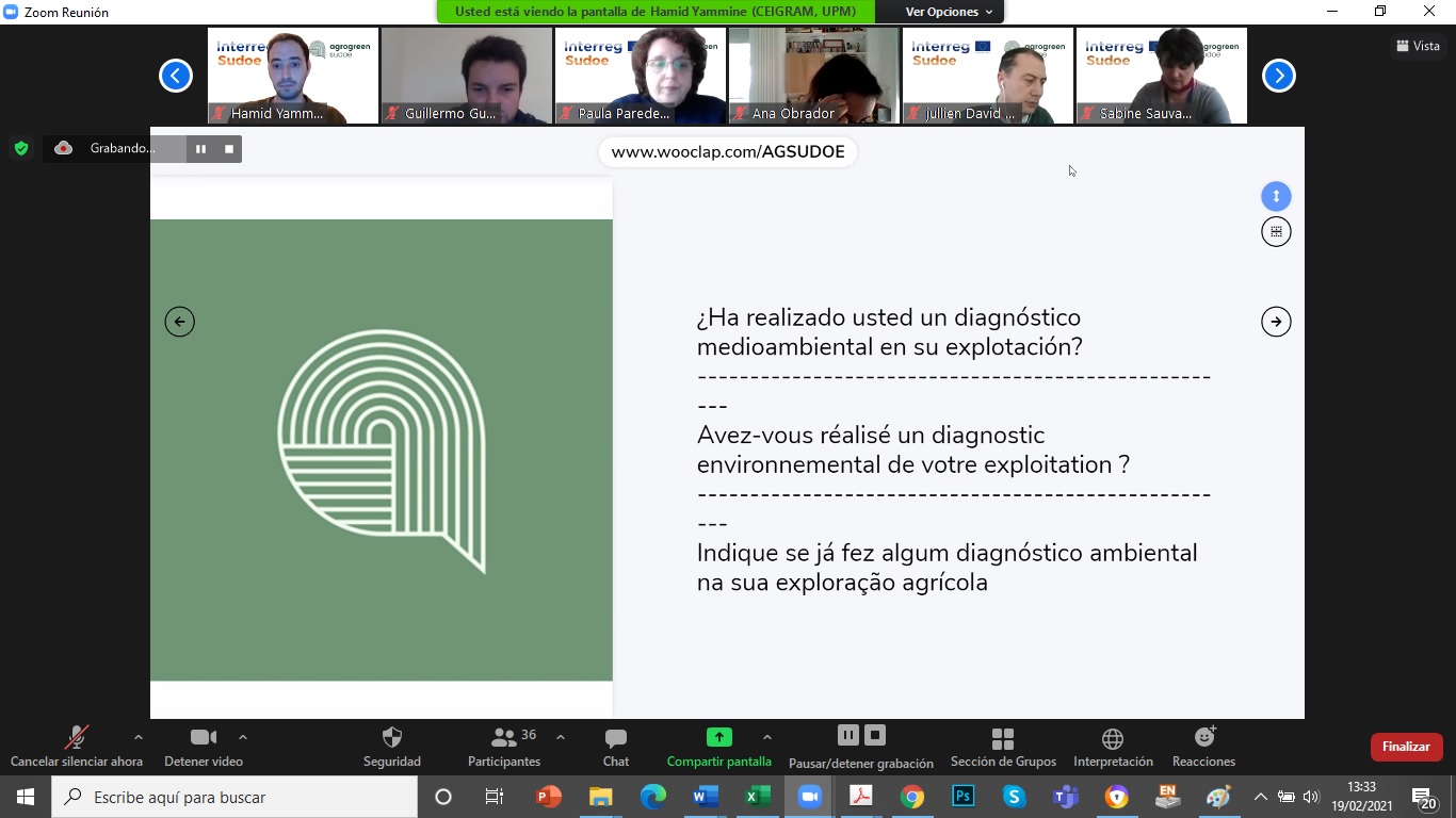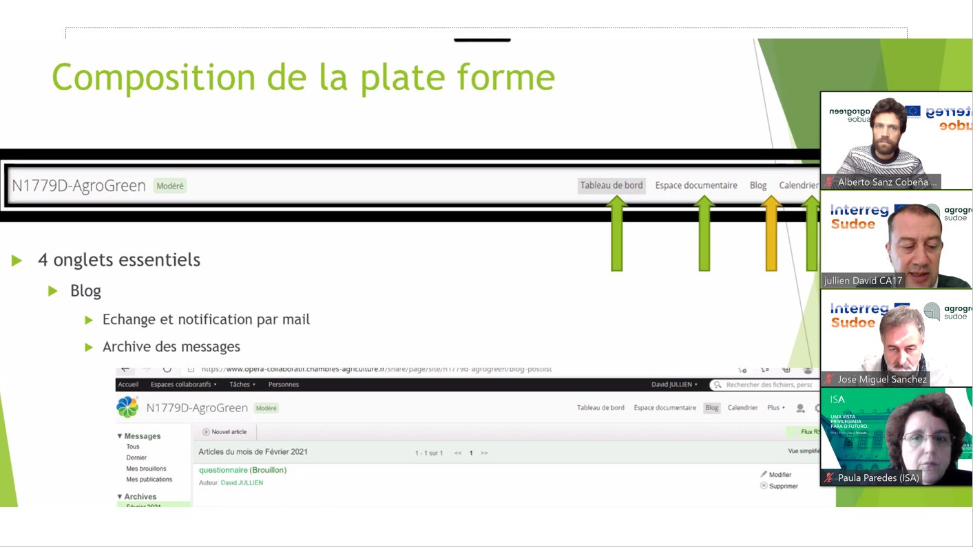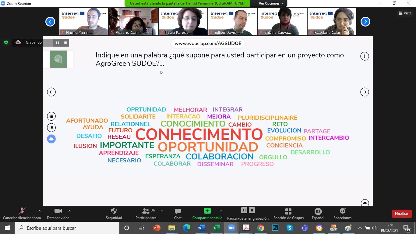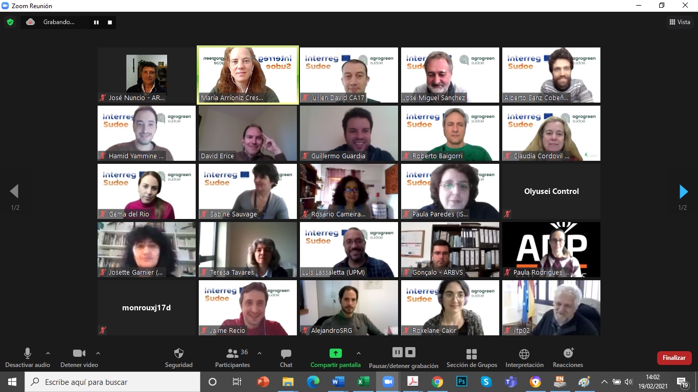 El pasado 19 de febrero tuvo lugar, de forma telemática, la primera reunión de la plataforma multi-actor AgroGreen-SUDOE de la que el CENTER forma parte como socio asociado. El proyecto busca desarrollar propuestas de manejo (como la fertilización y el riego) de sistemas de cultivo, que lleven a un impacto medioambiental mínimo de la actividad agrícola en el territorio SUDOE (España, Portugal y sur de Francia). El proyecto se desarrolla en el marco del Programa de Cooperación Interreg V-B Europa Suroccidental (SUDOE) y cuenta con una financiación de más de un millón de euros del Fondo Europeo de Desarrollo Regional (FEDER). La iniciativa está liderada por la Universidad Politécnica de Madrid (CEIGRAM) y se desarrollará, durante más de dos años, en los países antes mencionados. Esta primera sesión, comenzó con la explicación del manejo y funcionamiento de la Plataforma digital Multi-Actor para el intercambio de datos entre los socios. Posteriormente se inició la recogida de información proporcionada por los socios mediante una encuesta colaborativa. Esta información, pasará por un proceso de síntesis, generación de nuevos datos y estimación de impactos agroambientales mediante herramientas de modelización. El objetivo es incorporar la visión y sensibilidades de los principales actores implicados en el proceso de producción de alimentos de origen agrícola, así como en el desarrollo de políticas públicas en el ámbito agrícola y medioambiental. Interreg V Sudoe - Programa Interreg Sudoe - Inicio (interreg-sudoe.eu) Más información en: bzn-labocenter@mapa.es