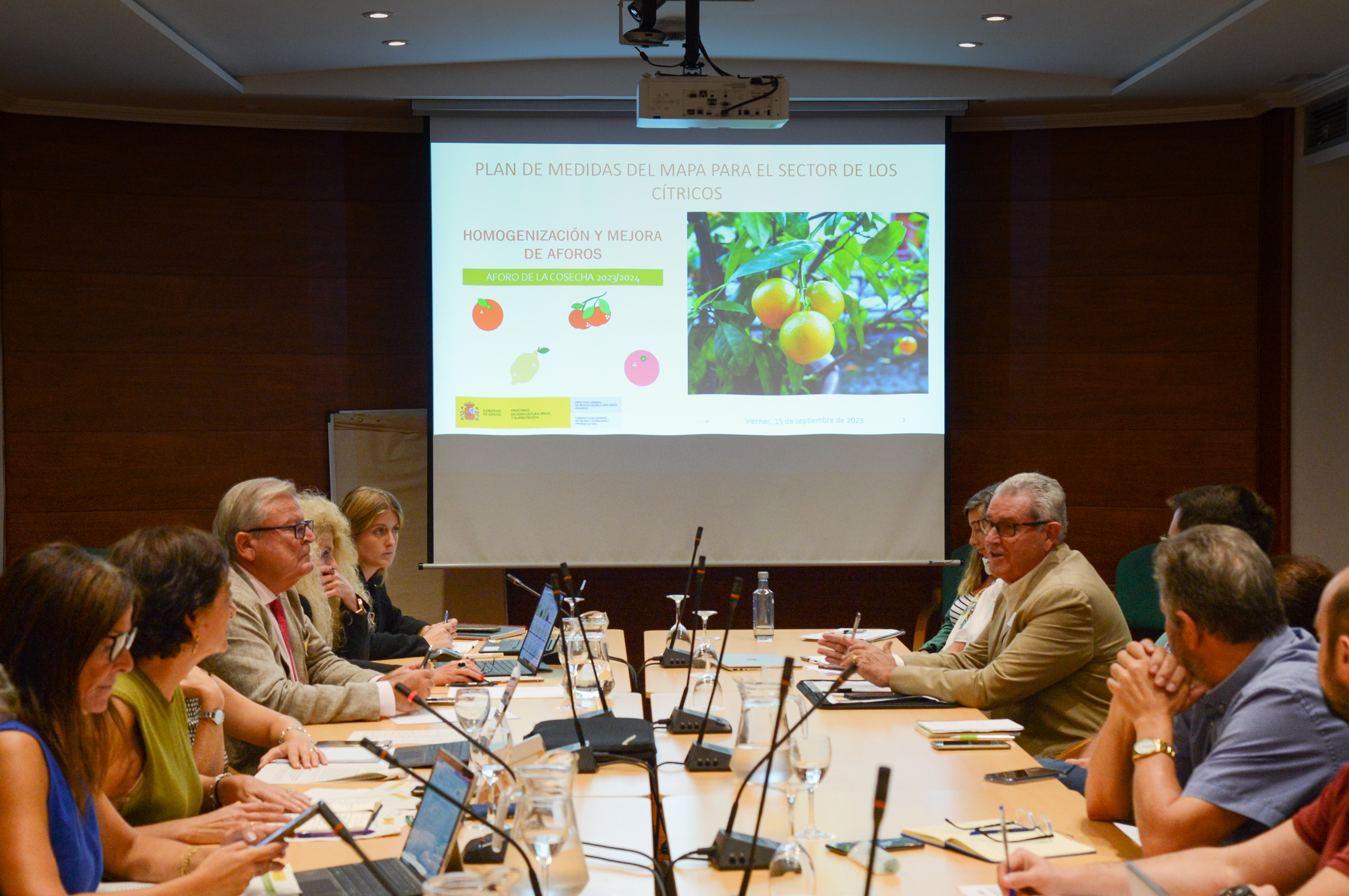 La sequía y las extremas condiciones climáticas registradas este año han sido decisivas en este volumen de producción, fundamentalmente por la falta de disponibilidades hídricas, las anormales altas temperaturas registradas durante las fases de floración y cuajado del fruto, y por las olas de calor en estadios posteriores que han requerido de restricciones al riego en algunas regiones. Por producto, se producirían 2,643 millones de toneladas de naranjas, lo que supone el 8,2 % menos que la campaña pasada y casi un 24 % (-832.000 toneladas) por debajo de la media de las últimas cinco, lo que redunda en el descenso ya producido el año pasado. La naranja será, como es habitual, el cítrico de mayor producción, con 45,9 % del total, si bien perdería casi seis puntos de representatividad respecto a la media. El 72 % de las naranjas corresponderán al grupo navel. La producción de pequeños cítricos se elevará a 1,853 millones de toneladas, una cantidad prácticamente igual a la de la pasada campaña, pero un 12,7 % por debajo de la media de las últimas cinco. Este producto supondría el 32,2 % del total cítricos. Las satsumas representarían el 4,3 % de este grupo, las clementinas el 54 % y el resto de mandarinas e híbridos el 41,7 %. Por el contrario, se estima que la producción de limones, después del bajón productivo de la campaña pasada, se recuperará y alcanzará 1.167.444 toneladas, lo que supondría un récord productivo. Este dato supone un 28 % más que la cosecha pasada y un 13 % por encima de la media de los últimos cinco años. En el caso del pomelo, con una previsión de 79.582 toneladas, también se obtendría una cosecha mayor que la pasada (+2 %) y que la media (+2,4 %), aunque el aumento sería más moderado. Estos datos han sido trasladados hoy a los representantes del sector en el transcurso de una reunión de la mesa sectorial presidida por la directora general de Producciones y Mercados Agrarios, Esperanza Orellana. La puesta a disposición del sector de las previsiones de cosecha al inicio de campaña constituye un avance en la mejora de la información que este ministerio facilita al sector desde 2019 y dota a éste de mejores medios para la toma de decisiones. En el transcurso de la reunión, se ha hecho además un repaso a las medidas de apoyo que ha puesto en marcha el ministerio para apoyar al sector relacionadas tanto con los efectos negativos de la guerra de Ucrania como de la sequía, y que han permitido inyectar directamente en las economías de los citricultores cerca de 75 millones de euros solo en ayudas directas. Un año más, con la presentación del aforo, el Ministerio de Agricultura, Pesca y Alimentación refuerza los sistemas de información al sector y actualiza su compromiso con él, tanto en materia de transparencia, como de solvencia y viabilidad, adquirido en el plan de medidas para la mejora del sector citrícola adoptado en abril de 2019. España es el primer productor de cítricos de la Unión Europea y sexto del mundo. La producción exportada alcanza un valor medio por campaña de 3.300 millones de euros, lo que convierte a España en el primer comercializador mundial de cítricos en fresco, con un 25 % de las exportaciones globales.