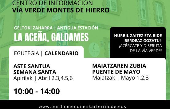 La apertura del Centro de Información en La Aceña es una de las acciones más relevantes de la colaboración entre la Asociación de Desarrollo Rural Enkarterrialde junto a los ayuntamientos anteriormente mencionados unido a otras iniciativas que ya están en marcha como los talleres de iniciación y caminata a las marchas nórdicas que comenzarán el próximo 12 de abril en Artzentales o la nueva edición Bideberdeate, que se celebrará el 8 de noviembre.