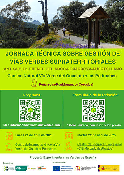 La Asociación Vías Verdes de Andalucía junto a la Fundación de los Ferrocarriles Españoles y Rutas Pangea organizan en el municipio cordobés de Peñarroya-Pueblonuevo la Jornada Técnica sobre Gestión de Vías Verdes Supraterritoriales, enfocada en el antiguo ferrocarril Fuente del Arco–Peñarroya–Puertollano, actualmente conocido como el Camino Natural Vía Verde del Guadiato y los Pedroches.