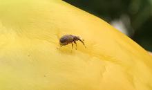 Daños: Los adultos se alimentan de flores, hojas y frutos jóvenes. En estos últimos, en forma de media luna, en lugar de circular, se pueden observar marcas de oviposición. Los pequeños agujeros de salida son comunes en la superficie inferior de los frutos caídos abandonados por las larvas. Los frutos, excepto las cerezas, caen prematuramente.