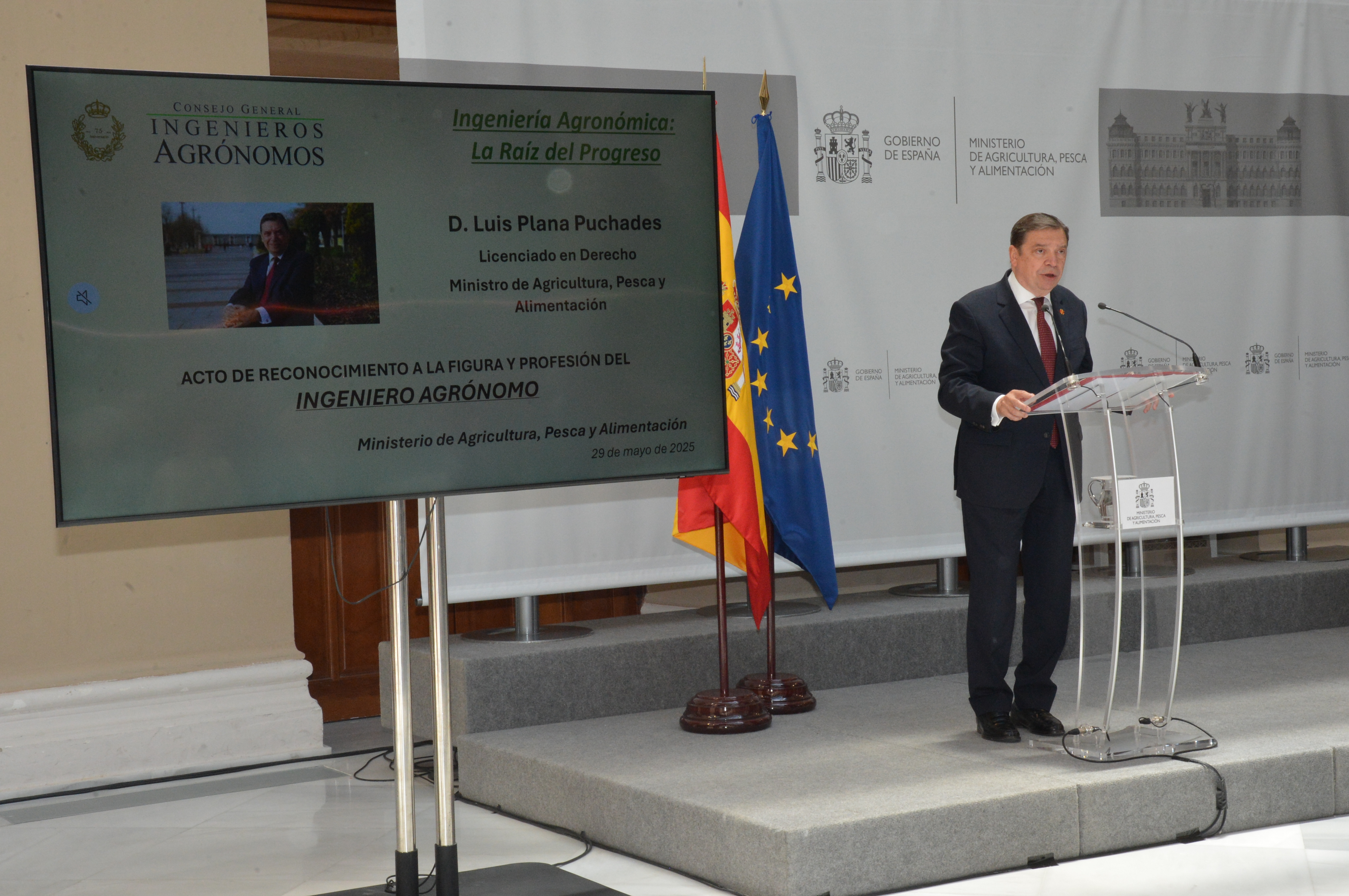 El ministro de Agricultura, Pesca y Alimentación, Luis Planas, ha elogiado hoy el papel de los ingenieros e ingenieras agrónomas, una profesión con un peso destacado en un sector cada vez más innovador, tecnológico y digital que contribuye al progreso y desarrollo de España, especialmente en el ámbito agroalimentario y el desarrollo rural. “Los ingenieros agrónomos son los pilares de la modernización de la agricultura española”, ha remarcado Planas, quien ha señalado también que esta modernización está íntimamente ligada con el fomento del relevo generacional, la innovación y la visión de futuro.