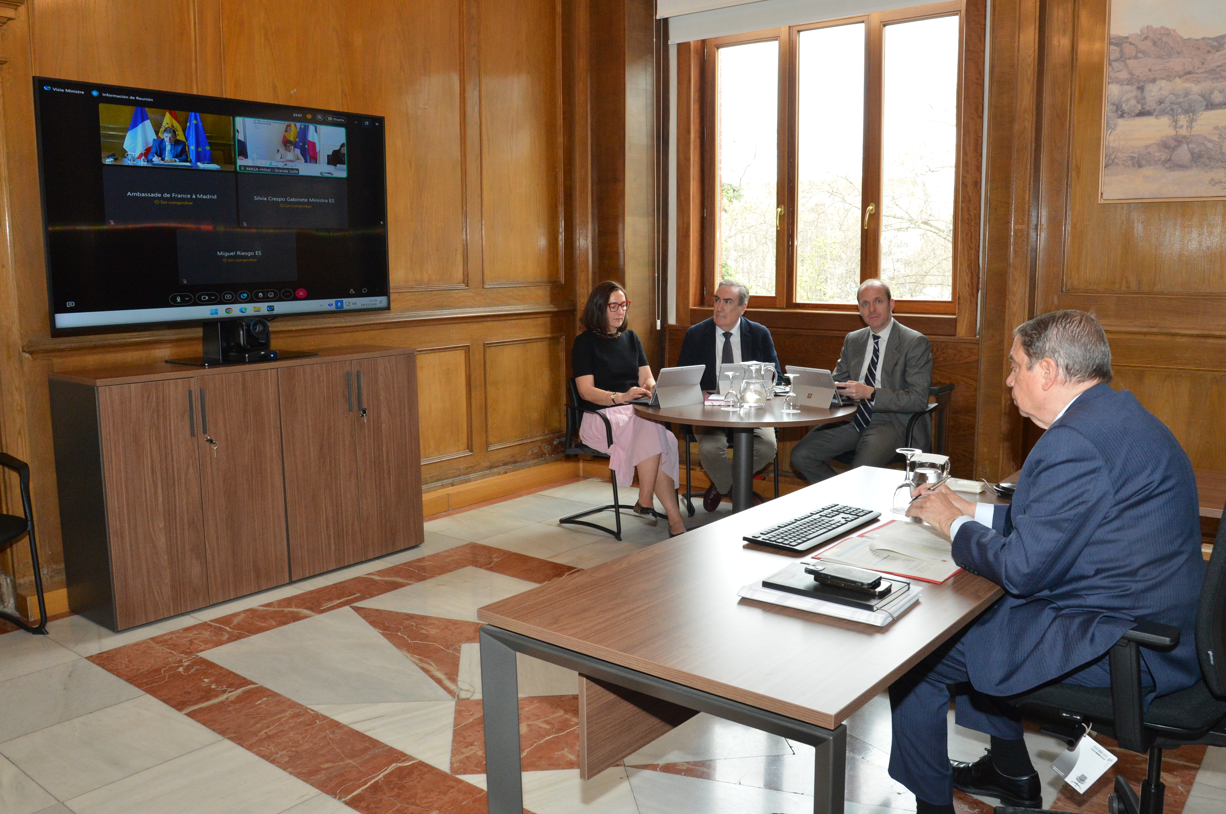 El ministro de Agricultura, Pesca y Alimentación, Luis Planas, se ha reunido hoy, por videoconferencia, con la ministra francesa de Agricultura, Annie Genevard, para tratar asuntos de interés común en el ámbito agroalimentario y pesquero.