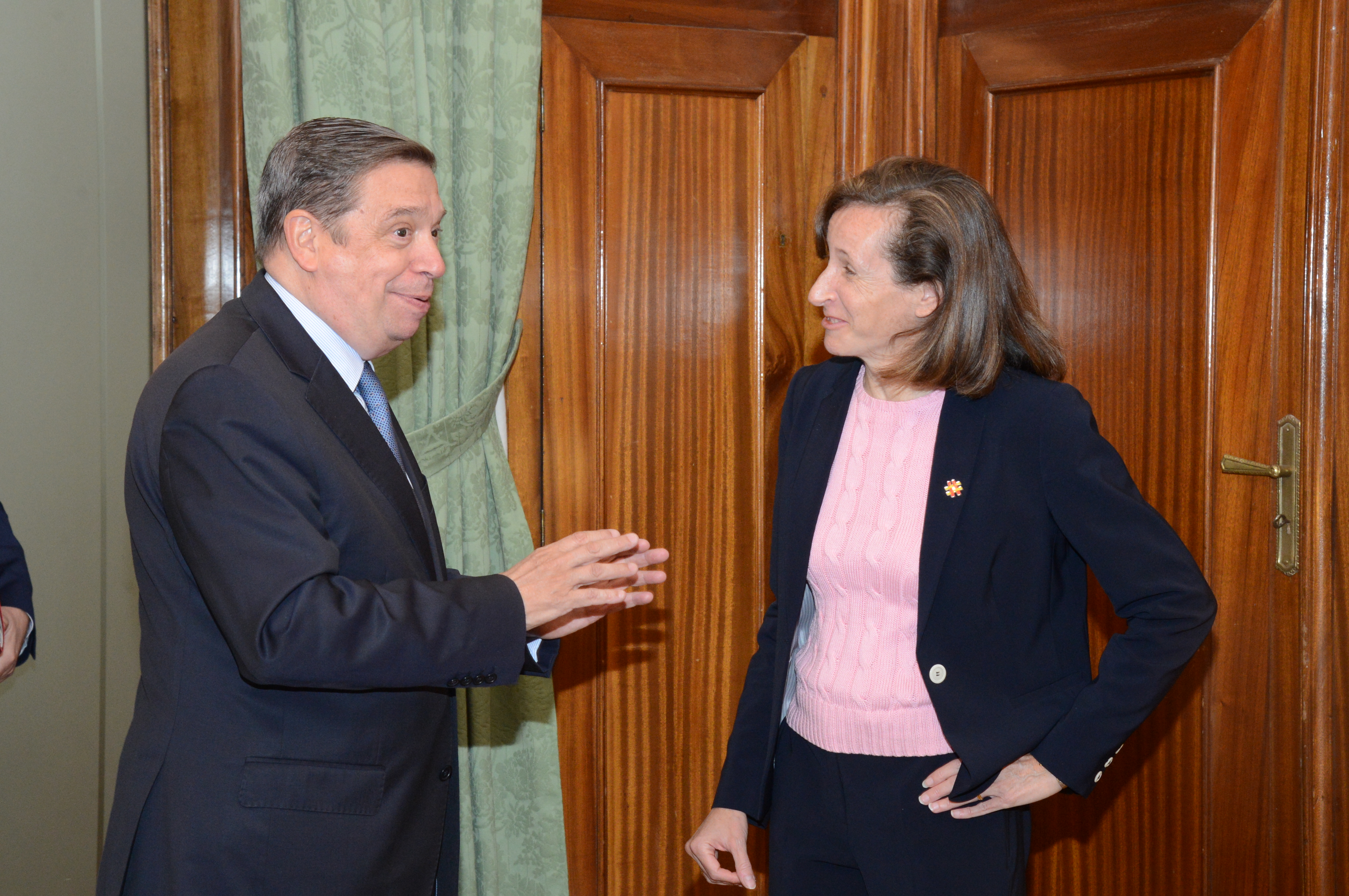 El ministro de Agricultura, Pesca y Alimentación, Luis Planas, se ha reunido hoy con la directora ejecutiva de Carrefour España, Elodie Perthuisot, para analizar puntos de interés común en política alimentaria, especialmente en lo que se refiere al sector de la distribución y comercialización de productos nacionales y regionales.