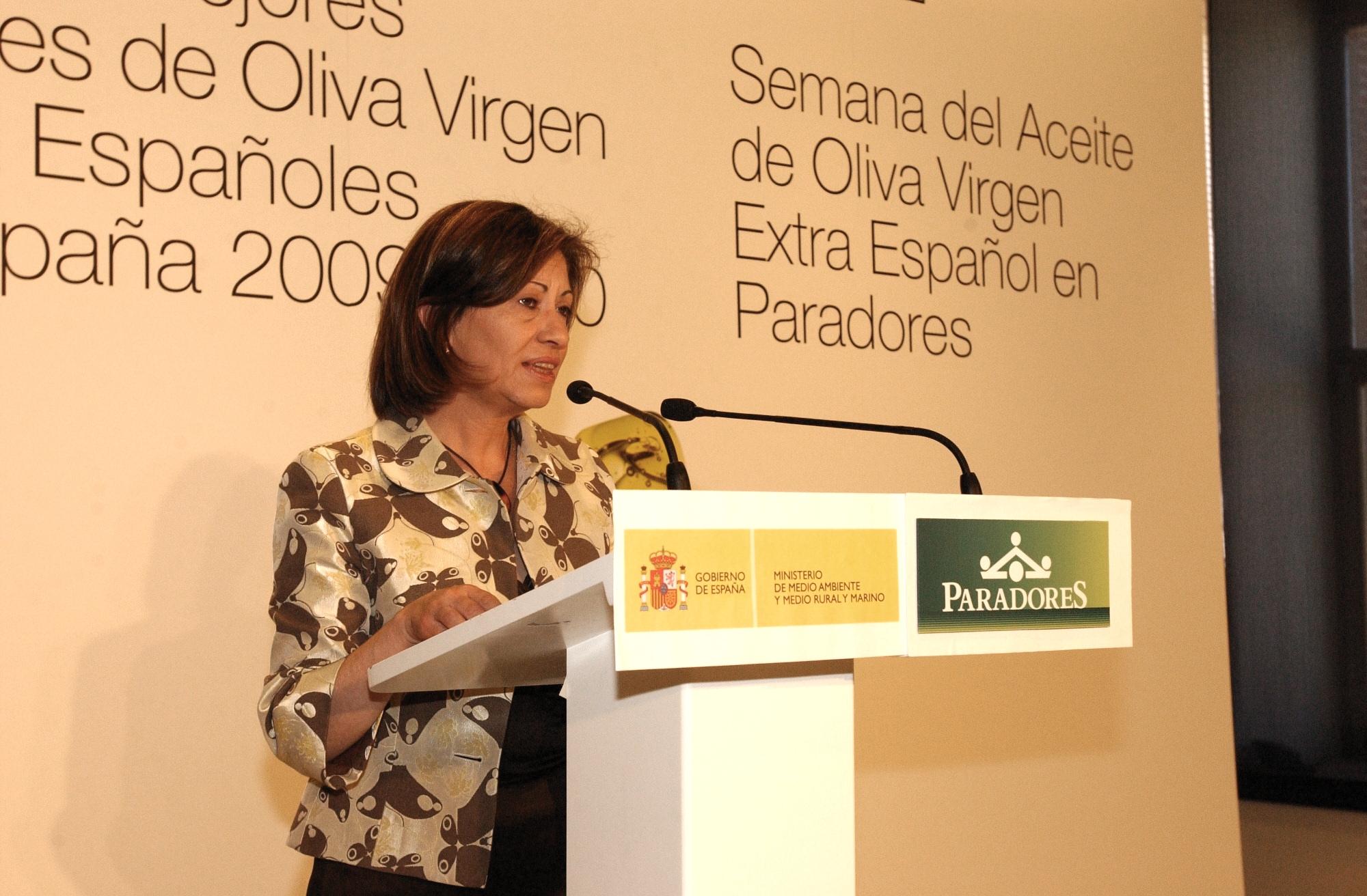 La Ministra de Medio Ambiente, y Medio Rural y Marino, Elena Espinosa ha entregado los premios "Mejores Aceites de Oliva Virgen Extra Españoles, Cosecha 2009-2010", en las categorías de aceites de oliva virgen extra de producción convencional, en sus tres modalidades, y en la de producción ecológica, en un acto celebrado en el Parador de Alcalá de Henares (Madrid.)
