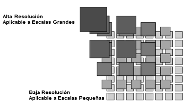 Cada una de las capas (layers) de un servidor WMTS sigue una o diversas estructuras piramidales de escalas (Tile Matrix sets o conjunto de Matrices de Teselas), en la que cada escala o nivel de la pirámide (Tile Matrix o Matriz de Teselas), es una rásterización y fragmentación regular de los datos geográficos a una escala o tamaño de píxel concreto. Por ello, una capa puede estar disponible en varios sistemas de coordenadas, y tener diferente ámbito en función de éstos.
