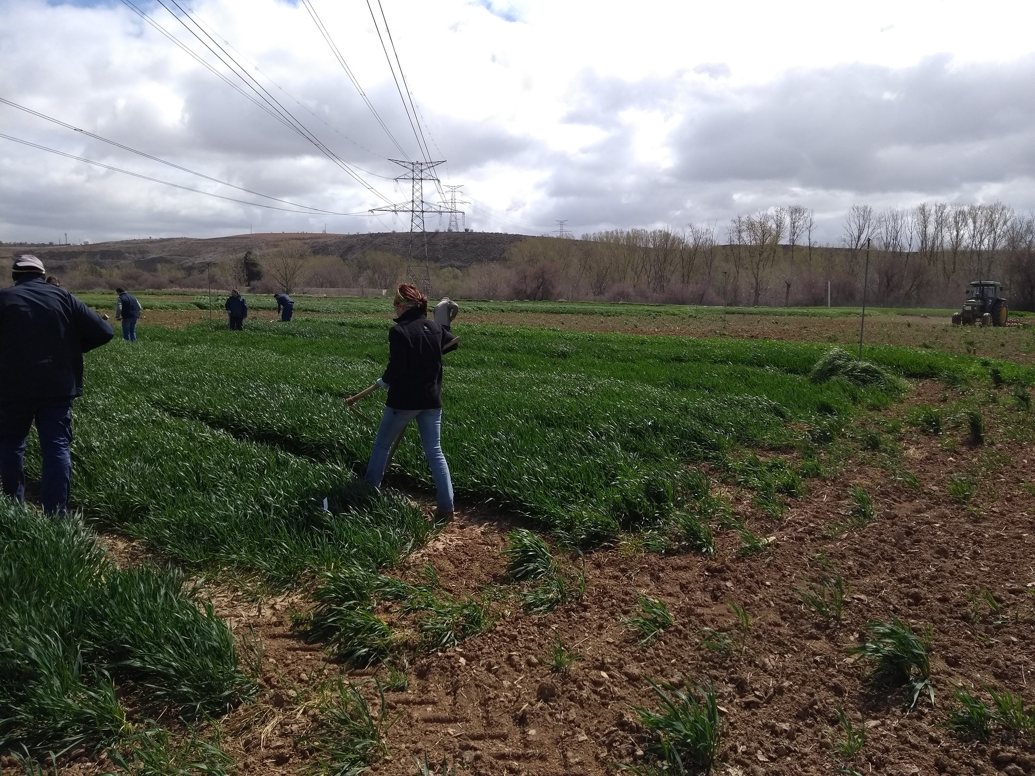 Esta semana, ante la proximidad de celebración de la jornadas GENVCE, el personal de la Oficina Española de Variedades Vegetales y de la Subdirección General de Regadíos y Economía del Agua, apoyados por personal aportado por las respectivas asistencias técnicas, en estrecha colaboración, están intensificando los trabajos para tener todo en perfectas condiciones y entre otras labores, se llevó a cabo la eliminación de malas hierbas. Se cavaron las entre-calles y se quitó, azada en mano, el ricio de las mismas en las parcelas de cereal, así como todas las malas hierbas de las parcelas de colza, estas últimas a mano, una a una. También se están acondicionando los accesos mediante la limpieza de la entrada y salida a la parcela de muestra y la nivelación y aporte de tierra al suelo de dicha zona.