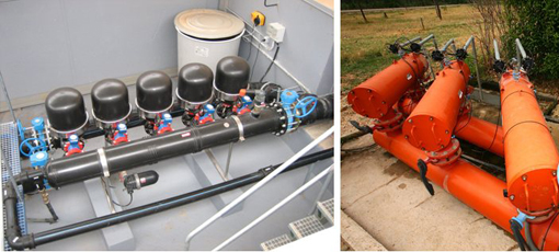 El equipo de filtrado es importante para dotar de agua limpia a los sistemas de riego presurizado para evitar posibles obturaciones. Las partículas transportadas en el agua a tratar son retenidas por un medio filtrante, sea éste un depósito de sedimentación, una malla o tela, una grava, o un anillo. Los filtros se seleccionan, en función del grado de exigencia del método de aplicación del riego, por el grado de filtración, capacidad de filtración, etc.