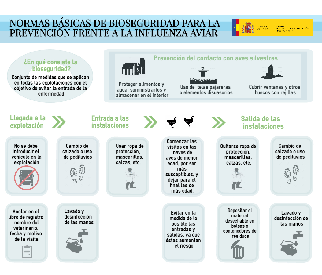 Para evitar la introducción y diseminación de enfermedades infecciosas en las granjas avícolas, que puedan producir dar lugar a alteraciones sanitarias, del bienestar animal y pérdidas económicas para los productores pero, lo que es más importante, puede tener incidencia sobre la salud pública, es necesario, por tanto, extremar las medidas de bioseguridad, comenzando por la implantación de las adecuadas medidas higiénico sanitarias en la propia granja, garantizando la seguridad alimentaria “desde la granja a la mesa”.