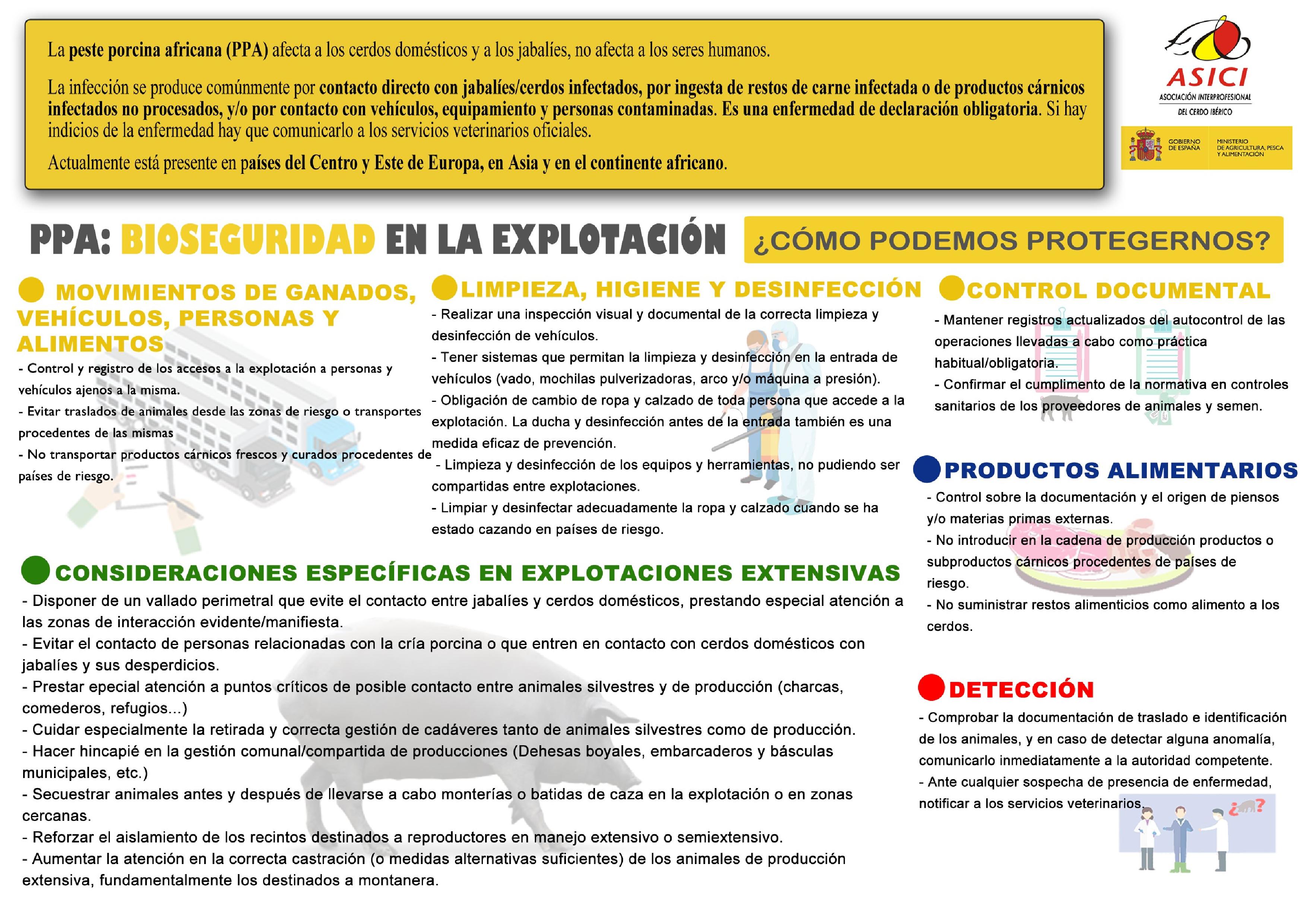 En el siguiente documento se recogen las distintas medidas que ha desarrollado el MAPA en colaboración y coordinación con las distintas CCAA para prevenir la entrada y difusión del virus de la PPA en España.