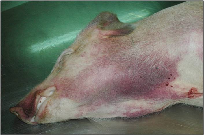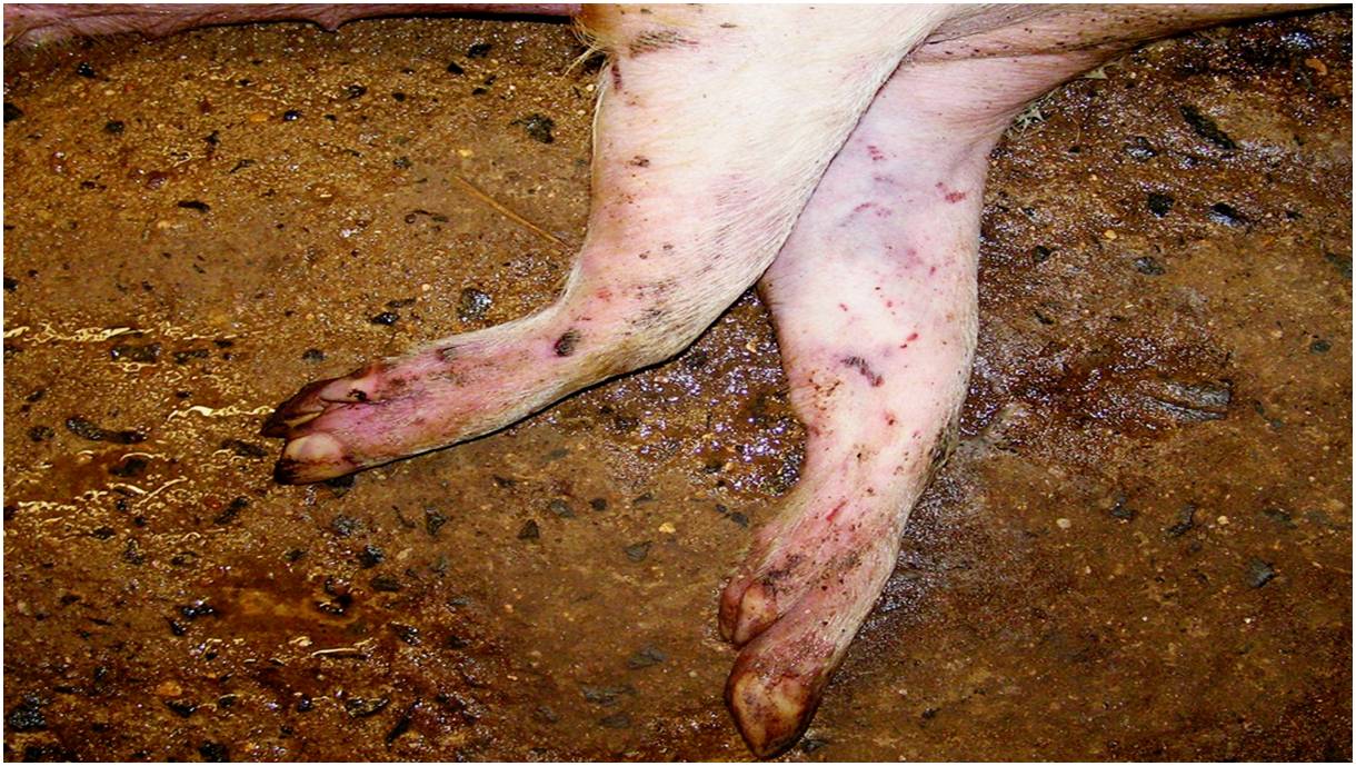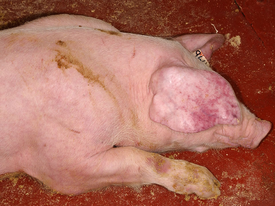 La PPA es una enfermedad altamente contagiosa que está causada por un virus de la familia Asfarviridae, género Asfivirus, existiendo cepas que pueden provocar cuadros agudos o hiper agudos con niveles de mortalidad y morbilidad próximos al 100%, si bien otras cepas cursan con cuadros clínicos sub agudos o incluso crónicos con menor mortalidad. Origina lesiones hemorrágicas en la piel y órganos internos por lesiones de los endotelios vasculares, pero a diferencia de la PPC esta enfermedad no cursa normalmente con sintomatología nerviosa. En cualquier caso, es imposible la diferenciación de estas dos enfermedades mediante la sintomatología y en caso de sospecha clínica habrá que realizar la toma de muestras inmediata para realizar un diagnóstico laboratorial que permita su diferenciación.