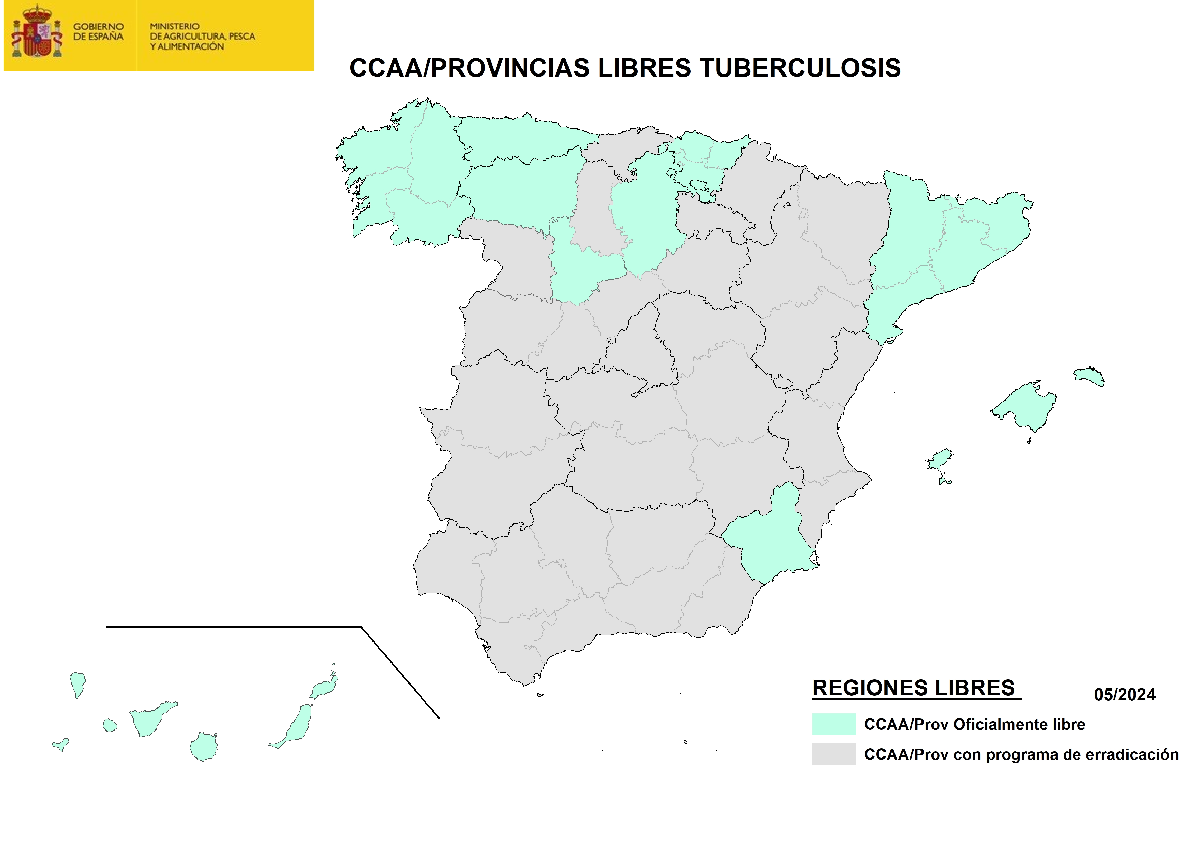 El Reglamento de Ejecución (UE) 2018/1882 de la Comisión, de 3 de diciembre de 2018, relativo a la aplicación de determinadas normas de prevención y control a categorías de enfermedades enumeradas en la lista y por el que se establece una lista de especies y grupos de especies que suponen un riesgo considerable para la propagación de dichas enfermedades de la lista, contempla a la Infección por el complejo Mycobacterium tuberculosis (M. bovis, M. caprae y M. tuberculosis) como enfermedad de categorías B+D+E en Bison ssp., Bos ssp. y Bubalus ssp.; como enfermedad de categorías D+E en Artiodactyla distintos de Bison ssp., Bos ssp. y Bubalus ssp.; y como enfermedad de categoría E en el resto de mamíferos terrestres.
