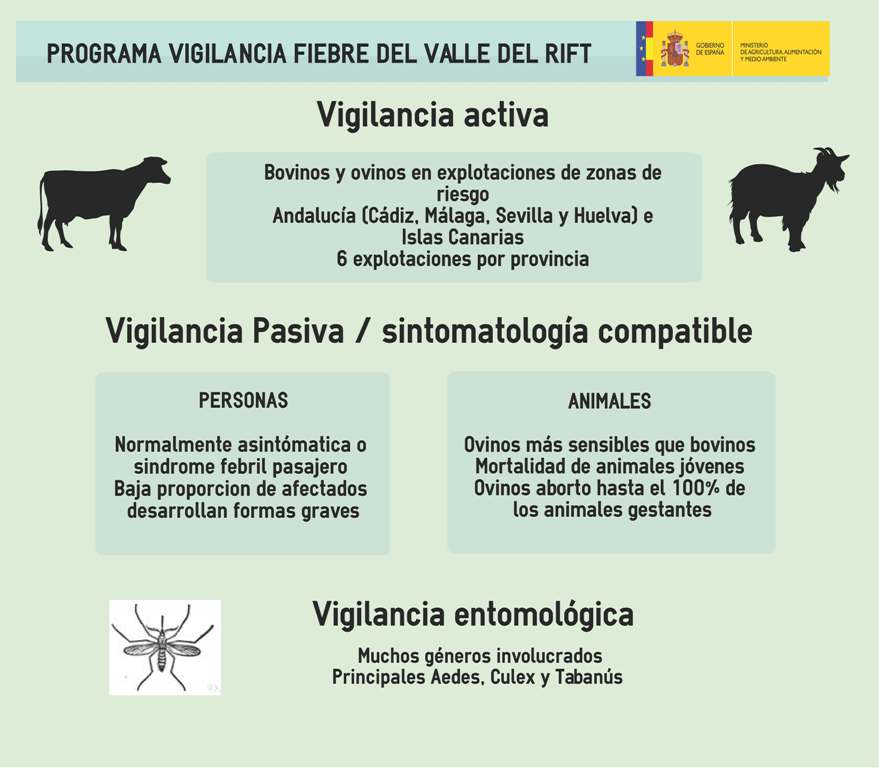 La estrategia para manejar el riesgo de Fiebre del Valle del Rift integra una serie de medidas establecidas tanto a nivel de la Unión Europea como a nivel nacional.