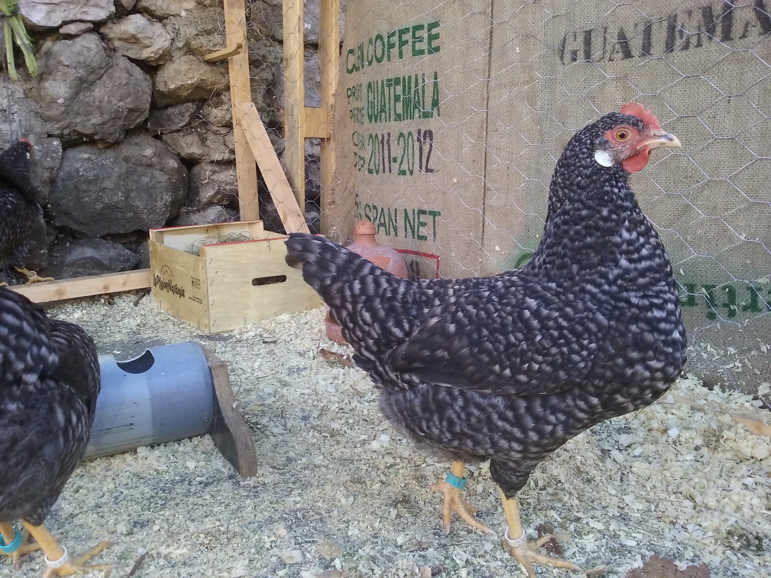 | Otras Características: | Tronco ancho, no muy largo, ligeramente inclinado hacia la cola. Dorso ancho, largo e inclinado hacia la cola. Pecho profundo. Cola media en los gallos, con hoces alargadas, blancas con posible presencia de barrado en la parte final. Las gallinas tienen la cola menos elevada que el gallo, 40º con la horizontal. Abdomen recogido, y con alas más largas que anchas. Muslos largos y robustos. |