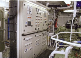 La distribución eléctrica se lleva a cabo desde el cuadro principal, con todo el aparellaje de distribución de disparo automático y con el mando principal ubicado en la sala de máquinas.