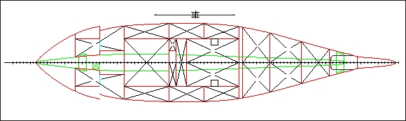 Zona destinada en su mayoría a tanques de combustible, aceite, agua de lastre y dulce, y lastre fijo, con algunos espacios libres para tomas de mar, espacios de sentinas, locales de las hélices, etc.