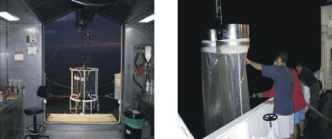 Muestreos ide pesca con red de tipo Bongo de 90 cuadrangular de 1 m2 de superficie de boca. Realización de pescas dirigidas a la captura de huevos y larvas en sus primeros estadios de desarrollo. Estudios de Ictioplancton.
