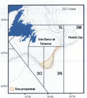 Principalmente se trabajó en la cola del Gran Banco de Terranova fuera de la Zona Económica Exclusiva de Canadá, en las divisiones 3O y 3N del área de regulación de la NAFO.