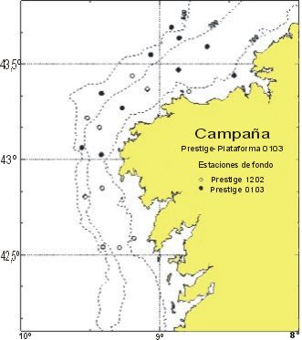 En enero del año 2003 se emprendió este proyecto para estimar el impacto producido por el vertido del hidrocarburo sobre las comunidades demersales en la plataforma continental de Galicia, en fondos blandos comprendidos entre 90 y 500 m, ensayándose nuevos métodos acústicos para la detección del fuel a las profundidades fijadas.
