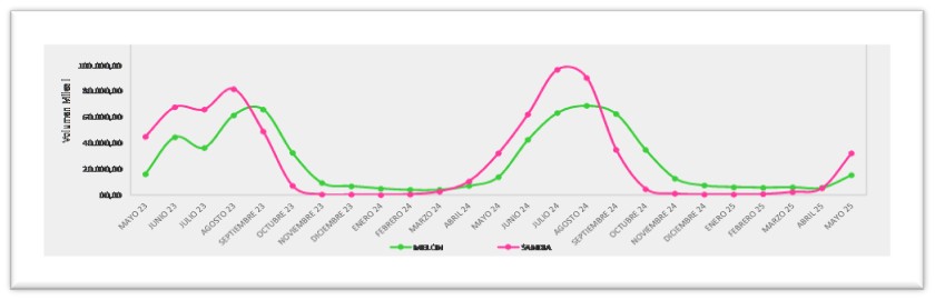 Porcentaje de cuota de volumen por canal de distribución (de junio 2024 a mayo de 2025)