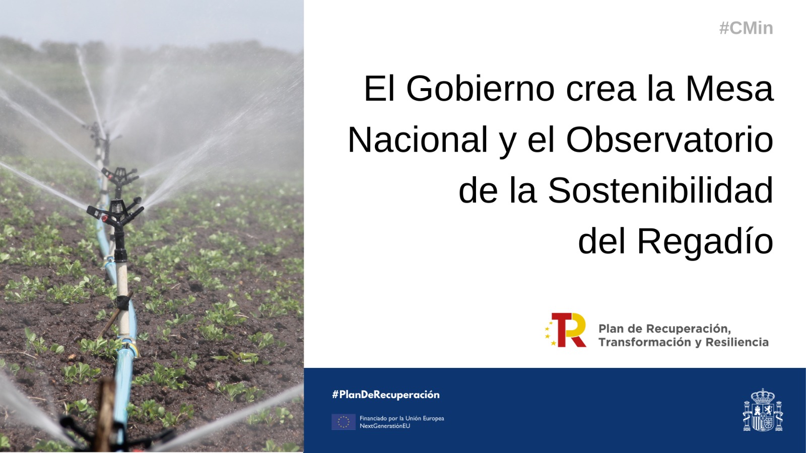 El Consejo de Ministros ha aprobado hoy, a propuesta del Ministerio de Agricultura, Pesca y Alimentación, un real decreto por el que se crean la Mesa Nacional del Regadío y el Observatorio de la Sostenibilidad del Regadío.