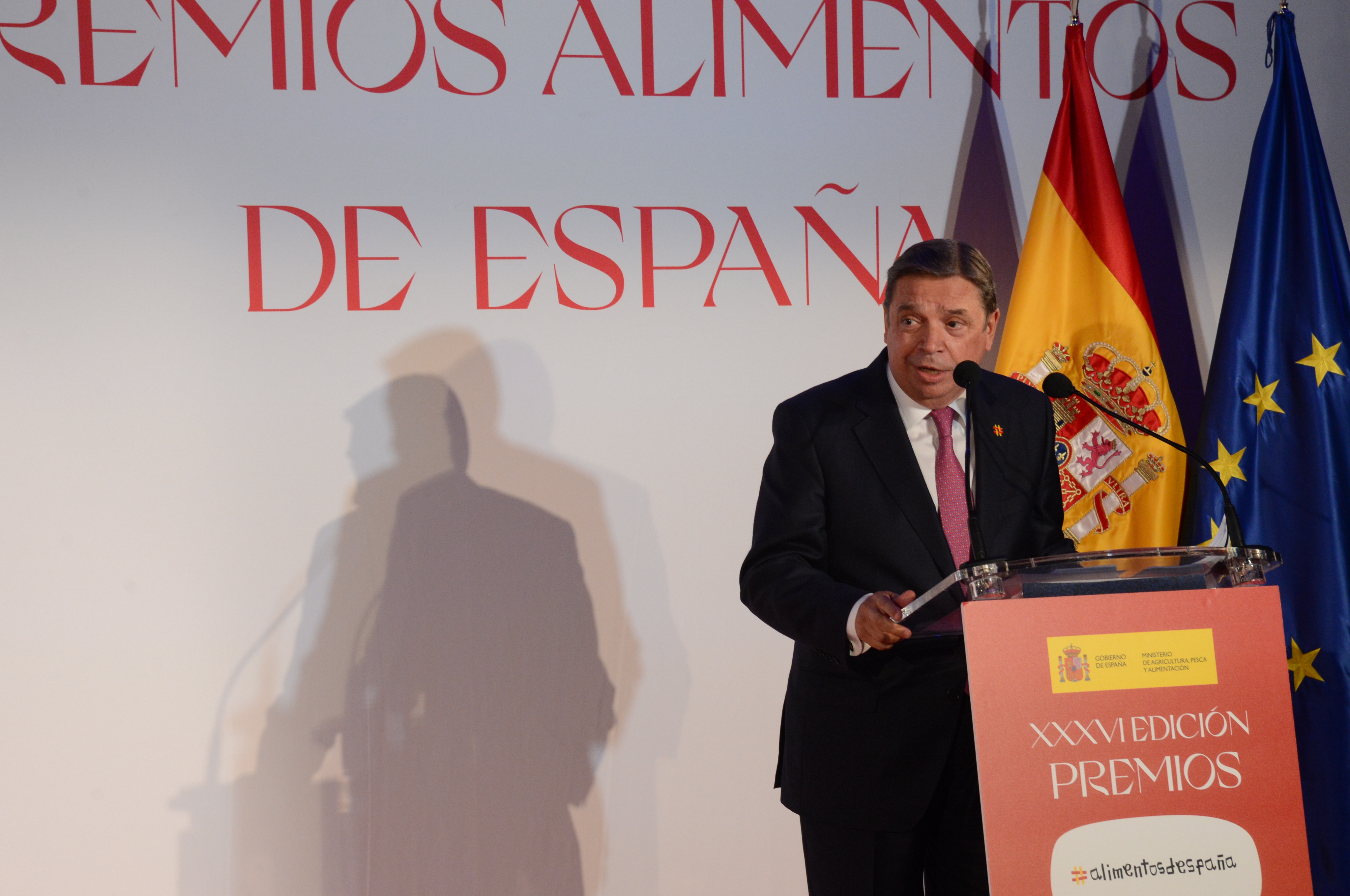 Galería fotográfica en este enlace El ministro de Agricultura, Pesca y Alimentación, Luis Planas, ha reconocido la gran labor que realizan los premiados con el galardón Alimentos de España. “Queremos dar valor a los alimentos y a quienes los producen”, ha asegurado, y ha presentado a los galardonados como casos de éxito e inspiración que refuerzan a España como una gran potencia agroalimentaria. Luis Planas ha presidido hoy el acto de entrega de la XXXVI edición de los premios Alimentos de España, en el que ha valorado la excelencia y el esfuerzo de “hombres y mujeres, empeñados -todos los días- en hacer bien las cosas”. Muchas de ellas son empresas familiares que, gracias a su trabajo, han llevado los alimentos de España a lo más alto. Este es un país privilegiado, ha señalado Planas, porque nuestra cadena alimentaria nos aporta alimentos seguros, de calidad, nutritivos y saludables que genera confianza y garantizan la seguridad alimentaria. El ministro también ha subrayado la continua modernización de las empresas galardonadas, su adaptación al cambio climático, la aplicación de las nuevas tecnologías, la digitalización, la sostenibilidad ambiental o la economía social como valores y claves del éxito de su trabajo. España es una gran potencia agroalimentaria, cuatro exportador europeo y séptimo del mundo. Las exportaciones agroalimentarias y pesqueras alcanzaron un récord en 2023, con más de 70.000 millones de euros. Para continuar esta senda el Ministerio de Agricultura, Pesca y Alimentación centrará su trabajo en tres líneas de actuación: la prevención y reducción del desperdicio alimentario, la promoción de alimentos de España y la Estrategia Nacional de Alimentación. El ministro ha puesto en valor las campañas para promocionar los Alimentos de España, a través de campañas como la de “El país más rico del mundo”, entre ellos el consumo de pescado para dar a conocer los beneficios de los productos del mar que son la proteína animal con menor huella de carbono. El premio extraordinario este año ha sido concedido a la Corporación de Radio y Televisión España (RTVE) por ofrecer información rigurosa, de calidad, independiente y plural sobre el sector. En total, se han entregado 23 galardones con premiados de Andalucía, Aragón, Cataluña, Castilla y León, Comunidad Valenciana, Galicia, Murcia y Navarra. En este enlace se puede descargar el documento con la relación de las categorías y los premiados El Ministerio de Agricultura, Pesca y Alimentación convoca estos galardones desde 1987 con el objetivo de reconocer la labor de empresas y profesionales que producen, ofrecen y divulgan los alimentos de calidad españoles.