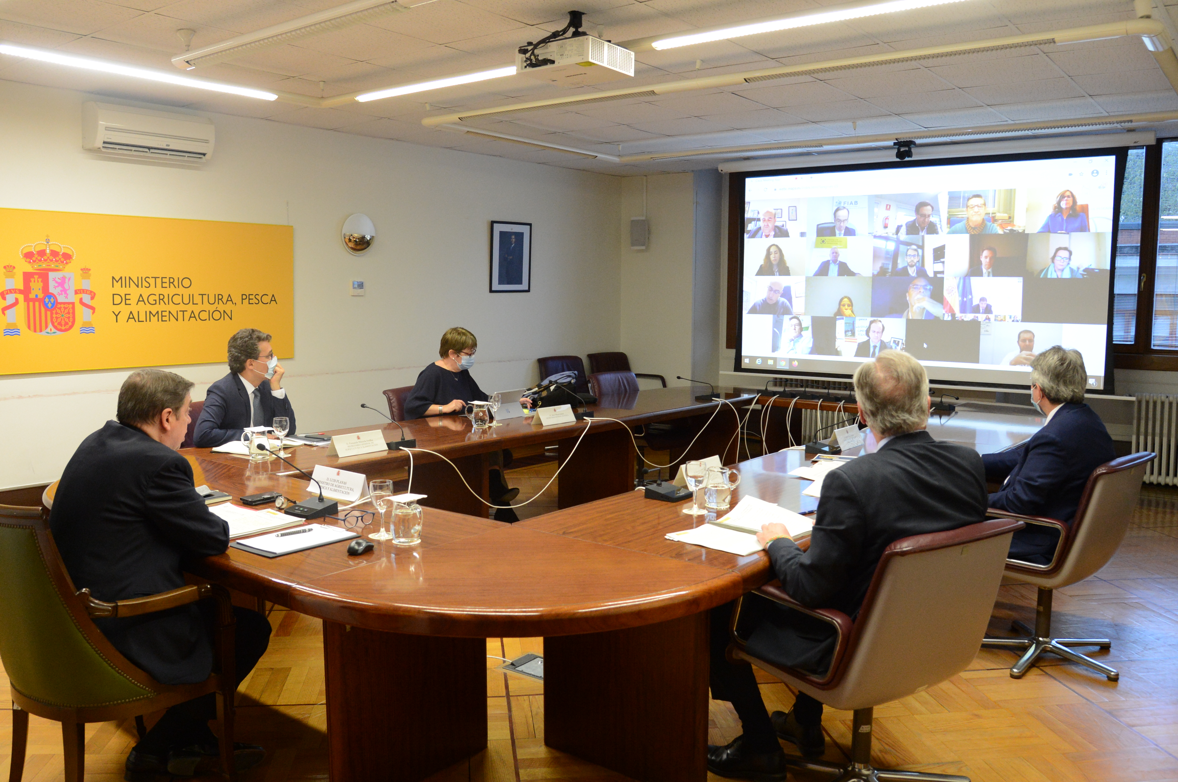El ministro de Agricultura, Pesca y Alimentación, Luis Planas, ha presidido hoy la primera reunión del Foro Consultivo sobre Transformación Ambiental y Digital del Sector Agroalimentario y Pesquero, creado por el Ministerio de Agricultura, Pesca y Alimentación (MAPA) para coordinar con el sector agrario y pesquero la ejecución del Plan de Recuperación, Transformación y Resiliencia del Gobierno. Un plan que afianzará la posición estratégica del sector en el conjunto de la economía, de la que ya es una actividad destacada. El Gobierno considera “indispensable” establecer una colaboración público-privada fluida para la puesta en marcha del Plan de Recuperación, Transformación y Resiliencia a través de grupos sectoriales de alto nivel con los que se podría multiplicar el efecto de los 140.000 millones de euros de este “proyecto de país” con inversiones que podrían alcanzar los 500.000 millones. Por ello, hoy se constituye este foro como un instrumento de trabajo entre el Ministerio de Agricultura, Pesca y Alimentación y las principales entidades del sector agrario, pesquero y agroalimentario. Ante los representantes de una veintena de entidades -organizaciones profesionales agrarias, cooperativas agroalimentarias, organizaciones pesqueras, industria alimentaria, la distribución y los sindicatos- el ministro ha desgranado las inversiones previstas en el componente dedicado a la transformación ambiental y digital, que contempla aportaciones públicas por valor de 1.051 millones de euros estructuradas en 11 proyectos, en torno a 4 ejes transversales: la transición ecológica, la transformación digital, la igualdad de género y la cohesión social. El objetivo es fomentar la calidad, la sostenibilidad, la economía circular, la producción ecológica, así como reducir el desperdicio y generar valor y empleo en torno al sistema agroalimentario y pesquero. Es la manera, según ha explicado el ministro, de continuar asegurando el suministro alimentario a la población a precios razonables y estables y de colocar a ambos sectores en el centro de la recuperación económica del país. El plan del sector agroalimentario y pesquero es un proyecto novedoso, que apuesta por el desarrollo de actuaciones específicas: reducir el consumo de agua en agricultura; impulsar el desarrollo –a gran escala- de inversiones en explotaciones agrícolas y ganaderas; potenciar la digitalización agroalimentaria y en sanidad animal y vegetal; y fomentar la sostenibilidad, investigación y digitalización en el sector pesquero. Además, tal y como ha informado a los representantes sectoriales, el plan se apoya en 9 importantes iniciativas políticas para aumentar la eficiencia de las inversiones y potenciar, junto al resto de medidas, la recuperación de la economía. Entre estas, cabe mencionar la modificación de la ley de cadena alimentaria; el desarrollo del registro de información sobre emisiones; la revisión gradual de la normativa de ordenación en los sectores ganaderos; el marco legislativo sobre nutrición sostenible en suelos agrícolas; el impulso a la sostenibilidad de las inversiones en regadíos; la ejecución del II Plan de acción de la estrategia de digitalización agroalimentaria; la ley de pesca sostenible e investigación pesquera; la actualización de la ordenación de las distintas artes, modalidades y censos en los caladeros nacionales; y la ley de modernización del control y régimen sancionador en la actividad pesquera. El ministro ha expresado su confianza de que, con la colaboración del conjunto del sector agrario, pesquero y agroalimentario, se pondrán en marcha los instrumentos para agilizar y promover su efectiva implantación. Ha remarcado que el sector agroalimentario, que ha sido esencial en la pandemia, estará en el centro de la recuperación. A ello colaborará este programa agroalimentario, así como los 47.724 millones de euros de la Política Agraria Común (PAC) para España.