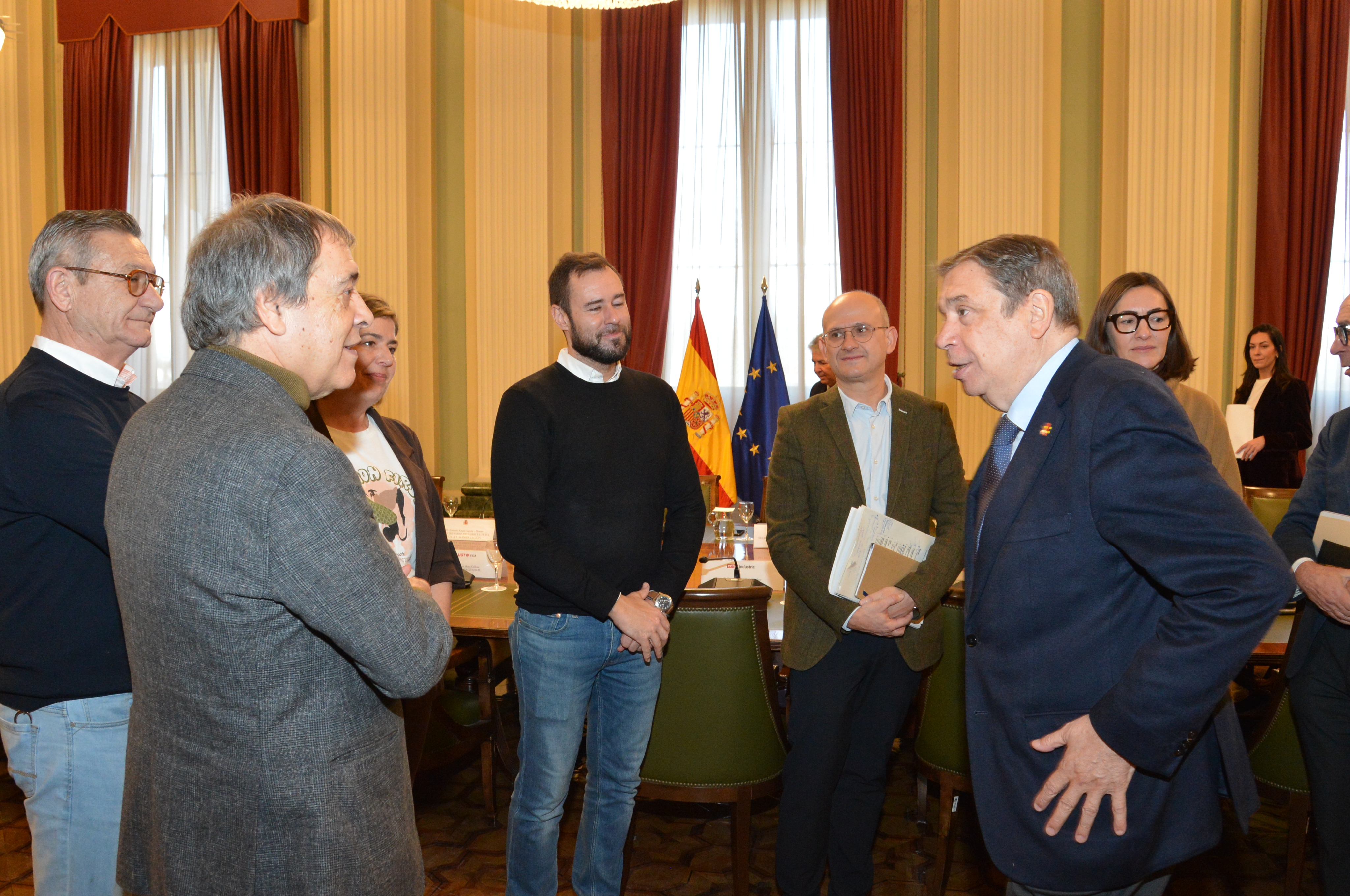 El ministro de Agricultura, Pesca y Alimentación, Luis Planas, ha mantenido hoy una reunión de trabajo con dirigentes de Comisiones Obreras (CC OO) de Industria y de la Federación de Industria, Construcción y Agro de la Unión General de Trabajadores (UGT). La reunión se enmarca en la ronda de contactos que mantiene el ministro con agentes representativos del sector para abordar los principales retos de la agricultura y la ganadería españolas.