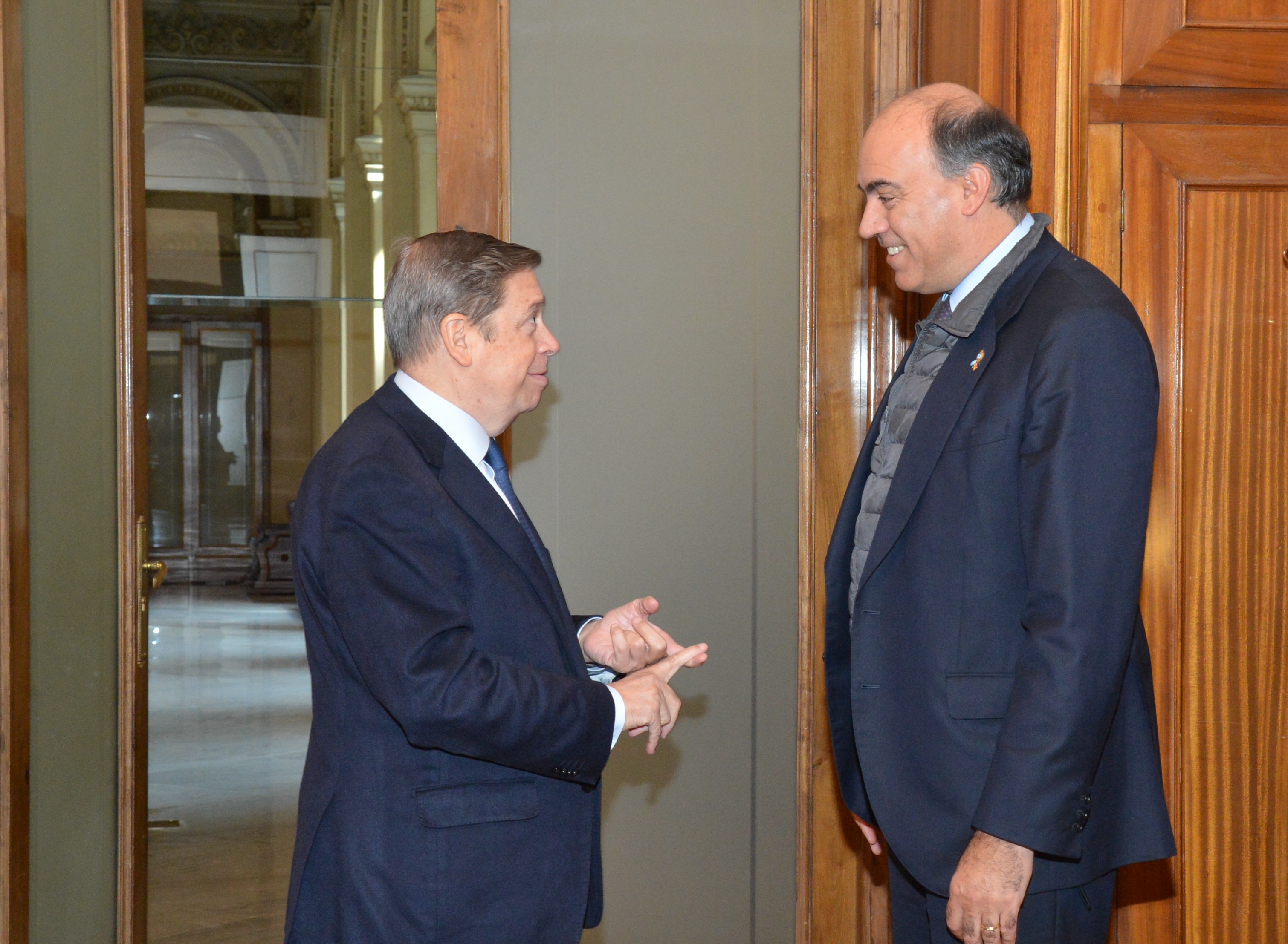 El ministro de Agricultura, Pesca y Alimentación, Luis Planas, se ha reunido hoy con el embajador de la República Argentina en España, Wenceslao Bunge, para abordar asuntos de interés bilateral en materia agroalimentaria y pesquera. España es uno de los países que apoya de forma decidida el acuerdo entre la Unión Europea y Mercosur (Argentina es uno de sus países integrantes), un pacto que, según Planas, supone grandes oportunidades para las exportaciones de ambos bloques y establece garantías para las importaciones. En 2024, la balanza comercial agroalimentaria entre ambos países es favorable a Argentina, con un saldo positivo de casi 1.300 millones de euros. Las exportaciones de España suponen 48 millones de euros que se prevén incrementar con el acuerdo entre la Unión Europea y Mercosur. Planas ha recordado que, del 24 al 25 de septiembre de 2026, Córdoba acogerá la XII Conferencia iberoamericana ministerial de agricultura y pesca, enmarcada en la XXX Cumbre Iberoamericana, bajo el lema “Iberoamérica. Juntos construimos nuestra comunidad. Juntos la proyectamos hacia el futuro y hacia el mundo.”
