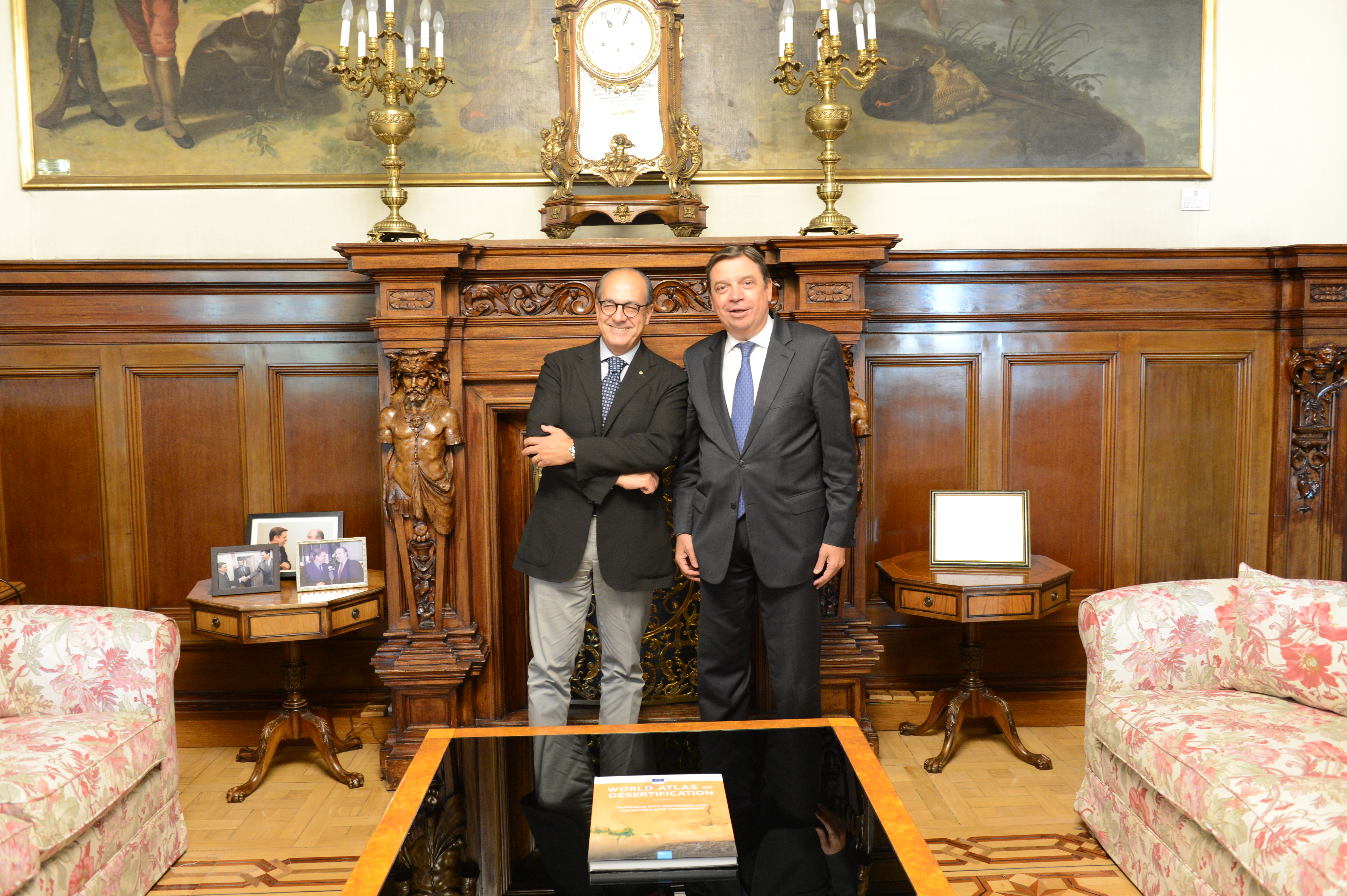 El ministro ha explicado a Paolo de Castro que España defenderá una verdadera política común, con objetivos y un sistema de gobernanza común en el marco de la Unión Europea, y un procedimiento de aprobación transparente para los planes estratégicos.