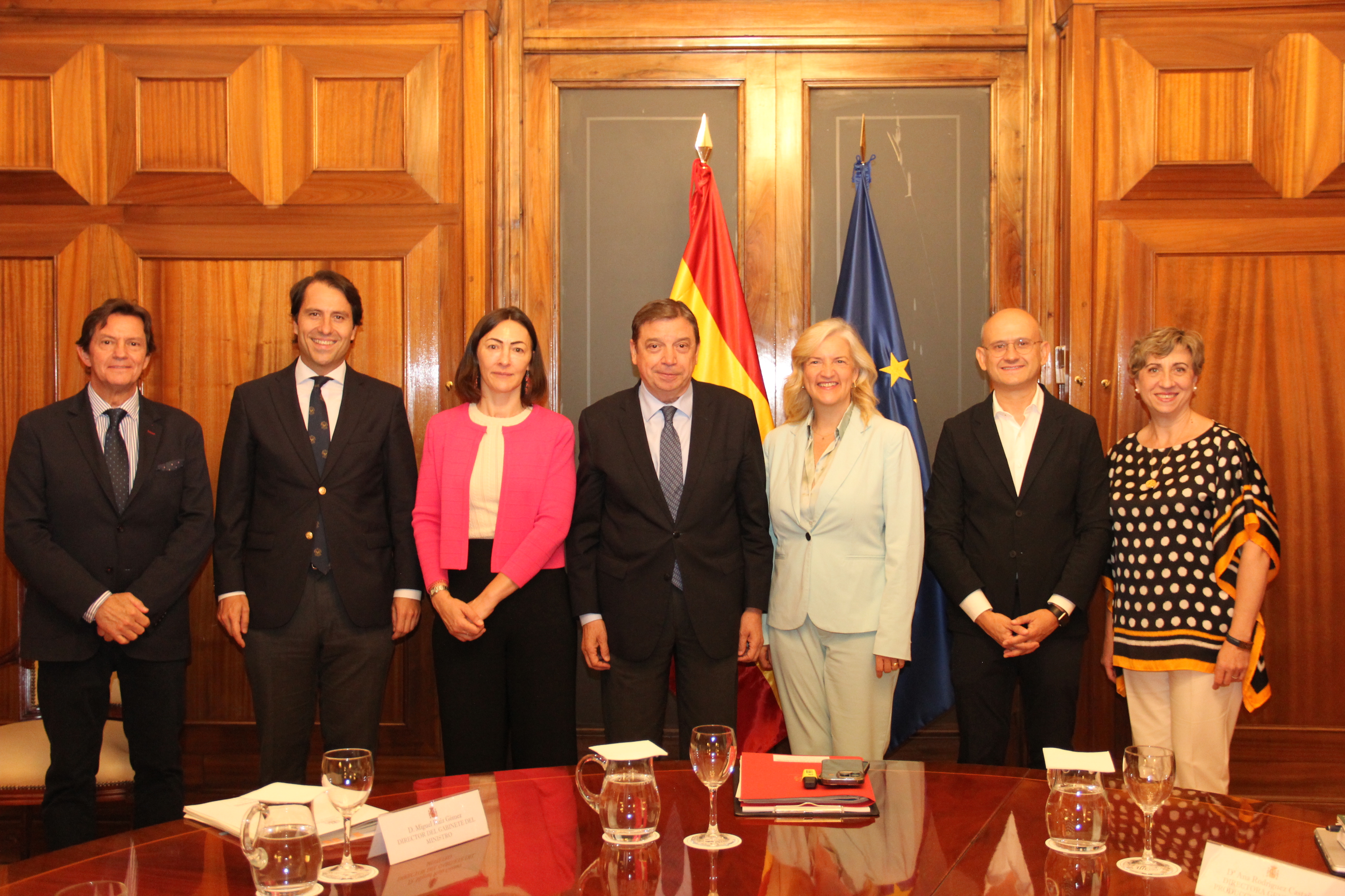 El ministro de Agricultura, Pesca y Alimentación, Luis Planas, se ha reunido hoy con representantes de la Asociación Nacional de Grandes Empresas de Distribución (Anged), que le han presentado la nueva estructura resultante de su integración con la Asociación de Cadenas Españolas de Supermercados (ACES).