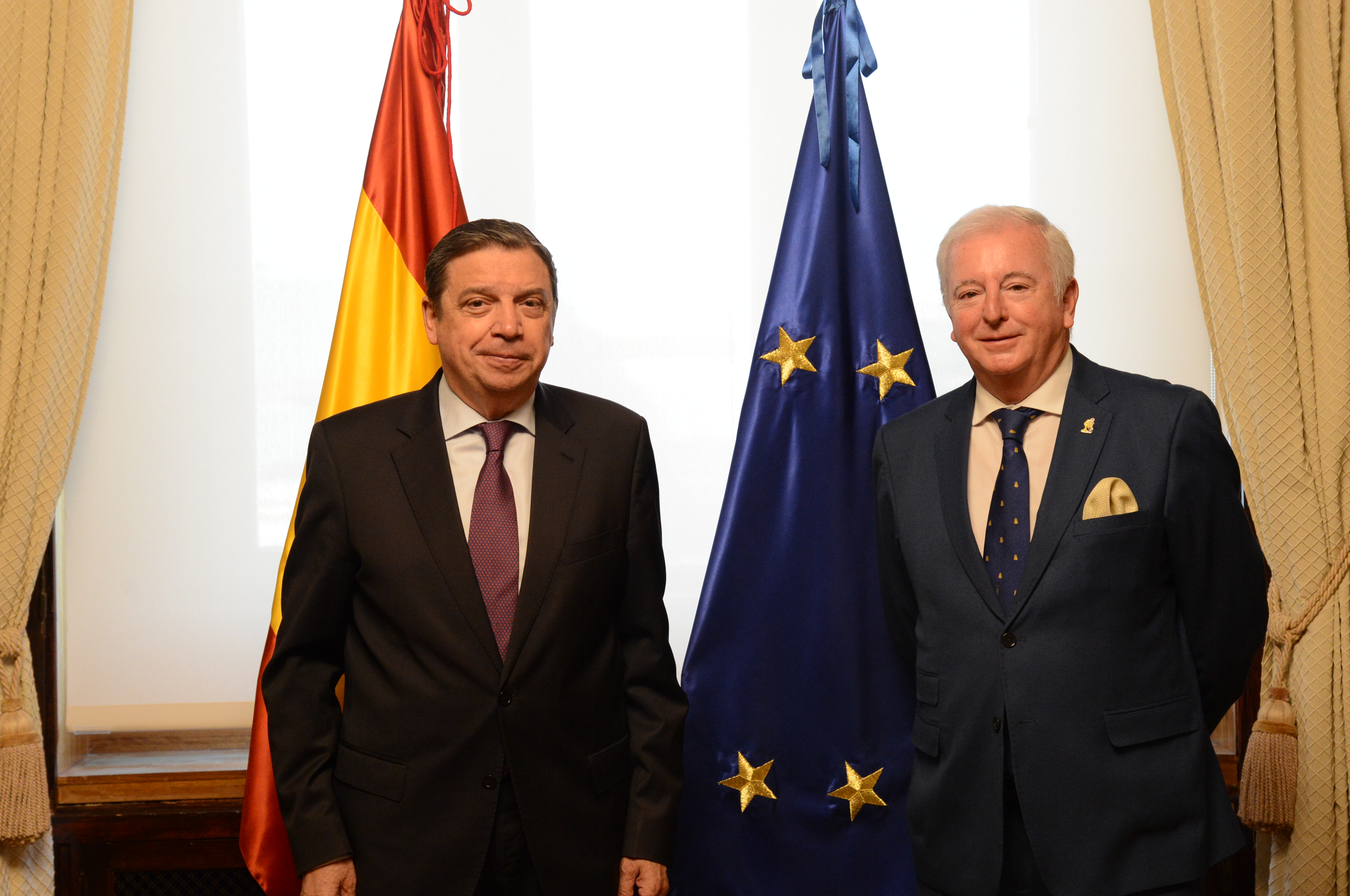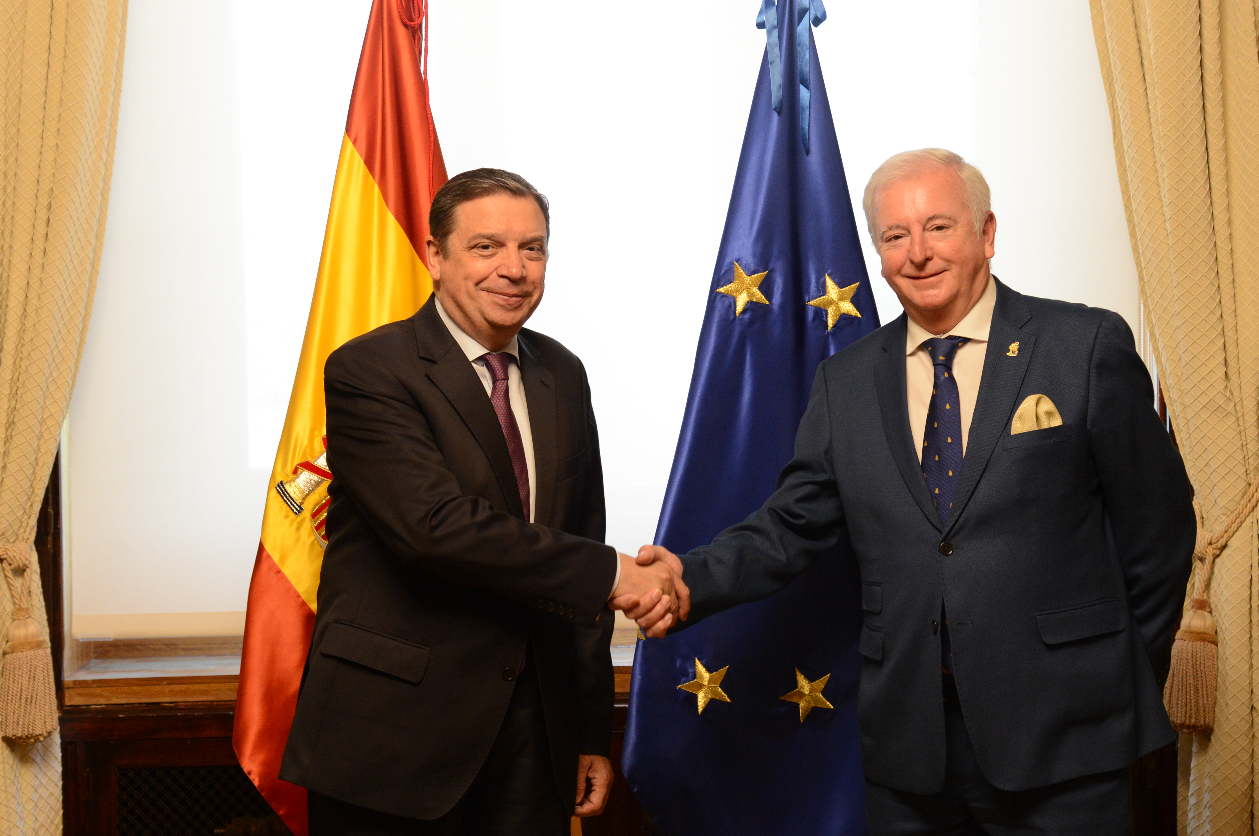 El ministro de Agricultura, Pesca y Alimentación, Luis Planas, y el presidente del consejo regulador de la Denominación de Origen Protegida (DOP) Montilla-Moriles, Javier Martín Fernández, se han reunido hoy para analizar los últimos datos y la evolución de esta indicación de calidad.