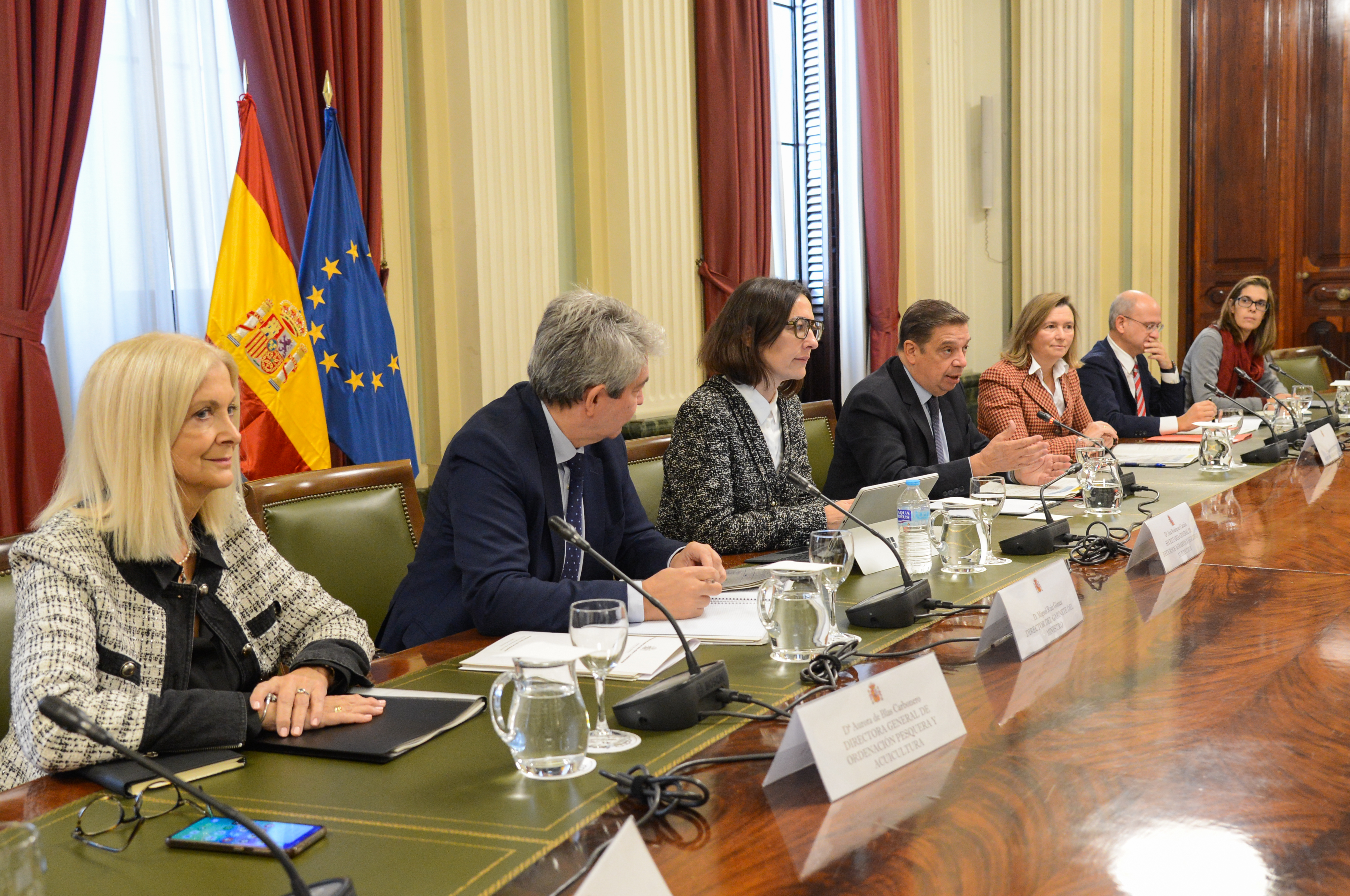 El ministro de Agricultura, Pesca y Alimentación, Luis Planas, se ha reunido hoy con representantes del sector pesquero para trabajar en la próxima Estrategia Nacional de Alimentación (ENA) y analizar las aportaciones realizadas ya por algunas asociaciones del sector.
