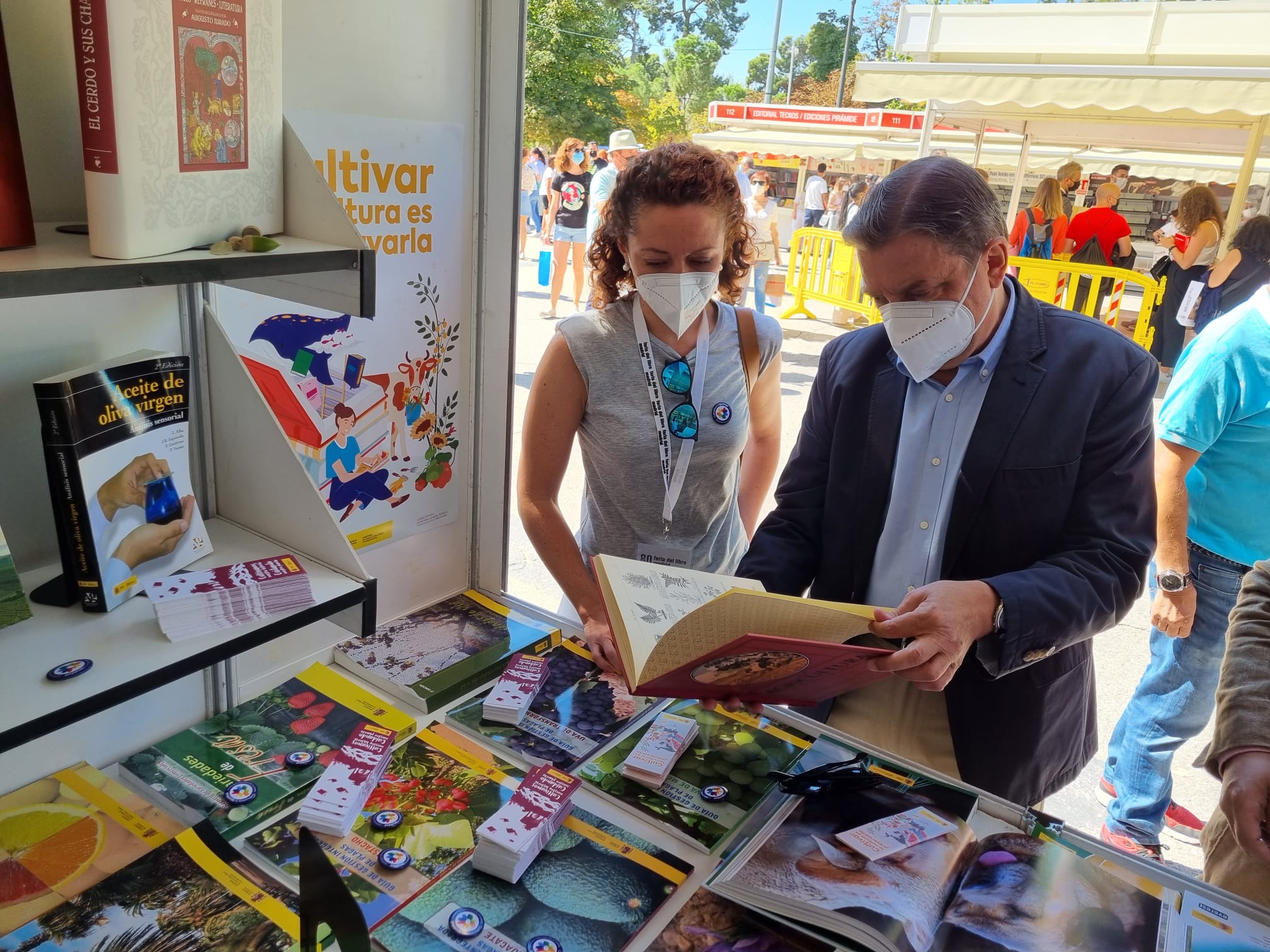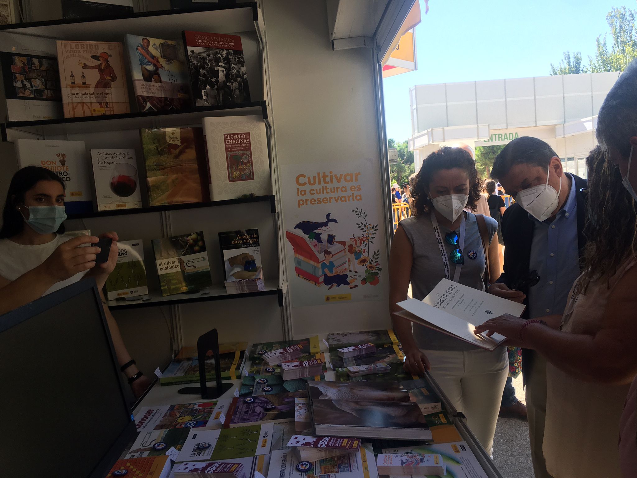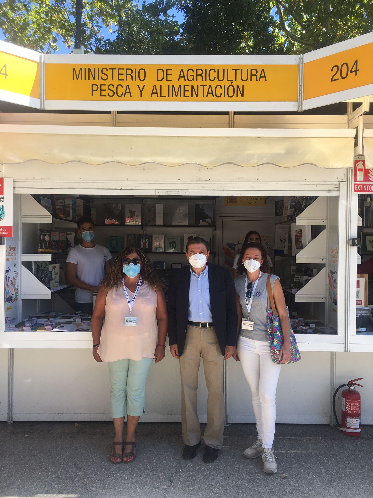 Luis Planas ha visitado hoy el estand que el Ministerio de Agricultura, Pesca y Alimentación (MAPA) tiene instalado, como en años anteriores, en la Feria del Libro de Madrid. Una feria que recupera su ubicación habitual en el Parque del Buen Retiro, tras un año que tuvo que celebrarse de manera virtual por causa de la crisis sanitaria.