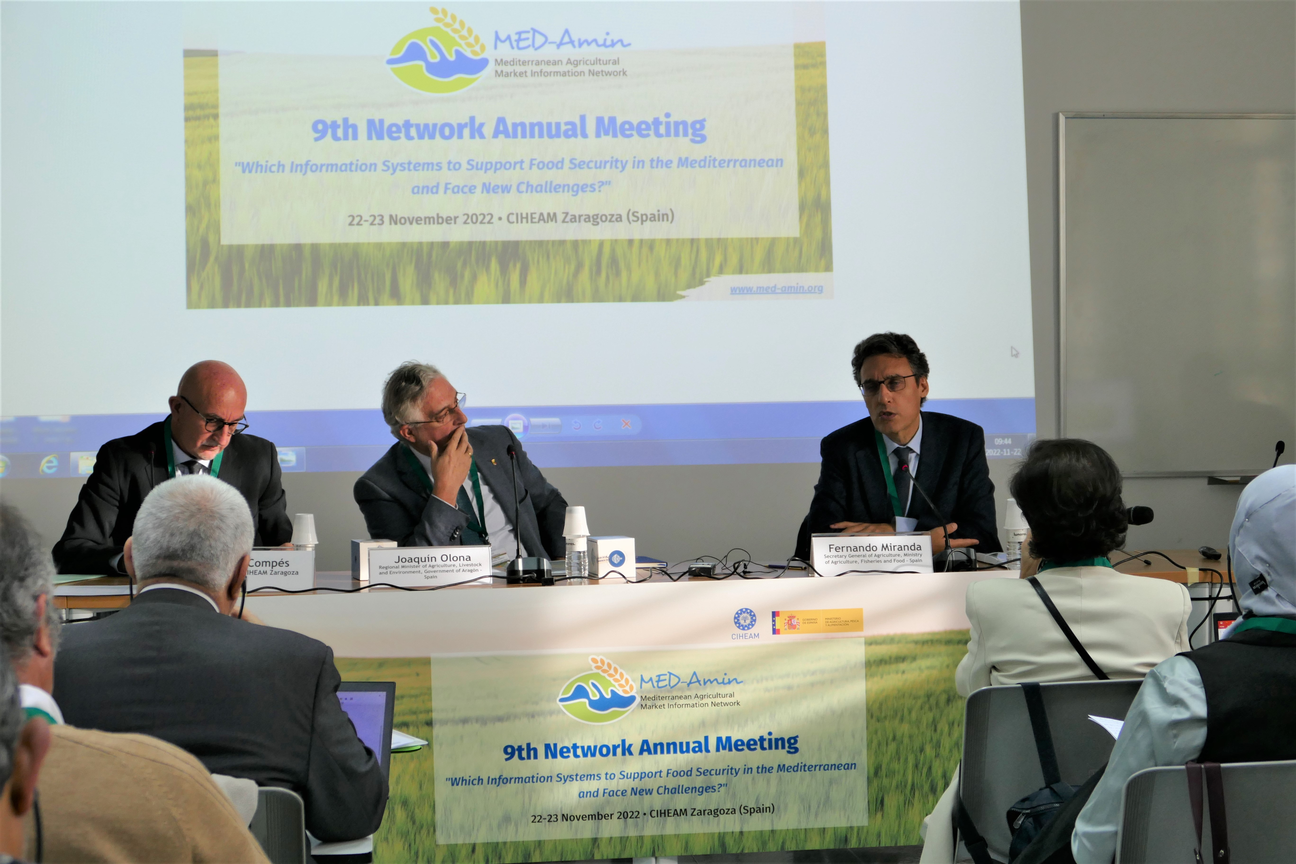 Fernando Miranda ha participado hoy, en Zaragoza, en la inauguración de la 9ª reunión MED-Amin (Mediterranean Agricultural Market Information Network), la red de información de los mercados cerealistas del Mediterráneo que coordina el Centro Internacional de Altos Estudios Agronómicos Mediterráneos (Ciheam), con el apoyo de la FAO, el Consejo Internacional de Cereales y la Comisión Europea. La inauguración ha contado también con la intervención del consejero de Agricultura del Gobierno de Aragón, Joaquín Olona.