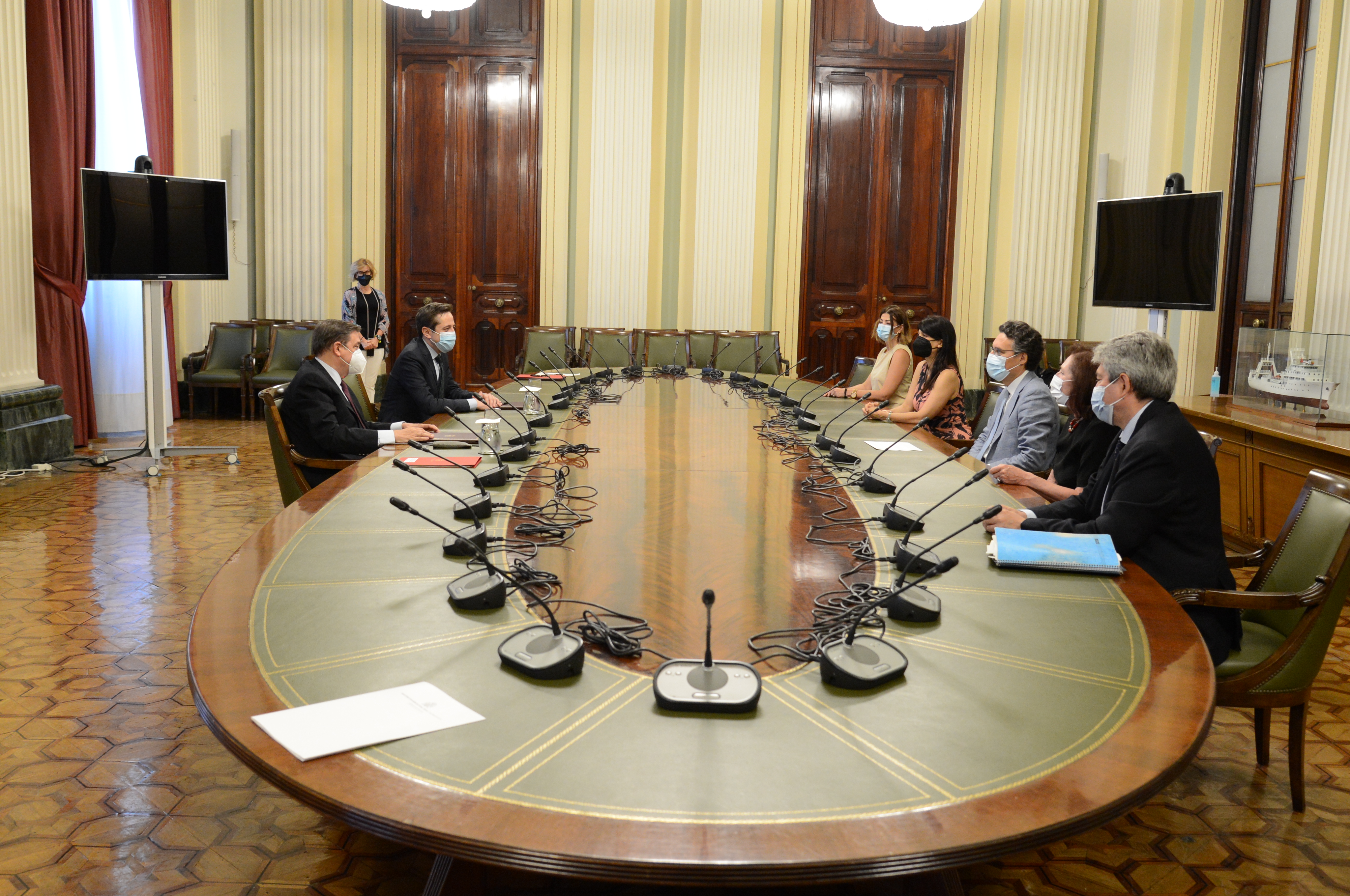 Hoy, en la firma del convenio con la Empresa Nacional de Innovación (ENISA)