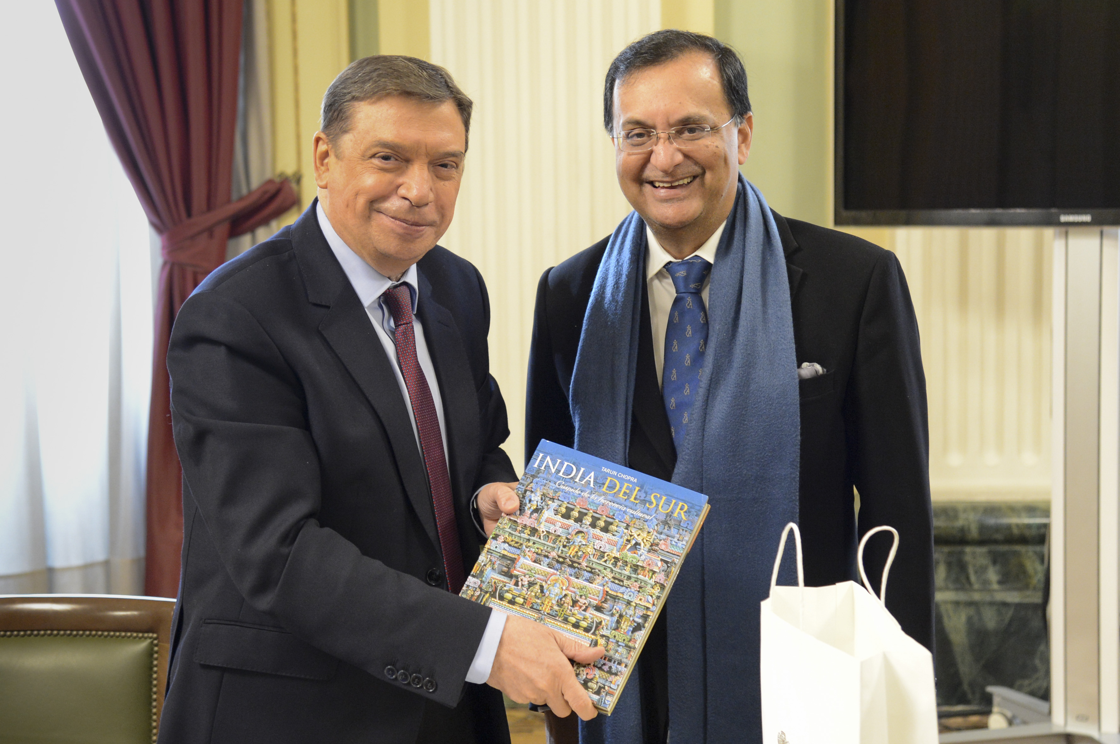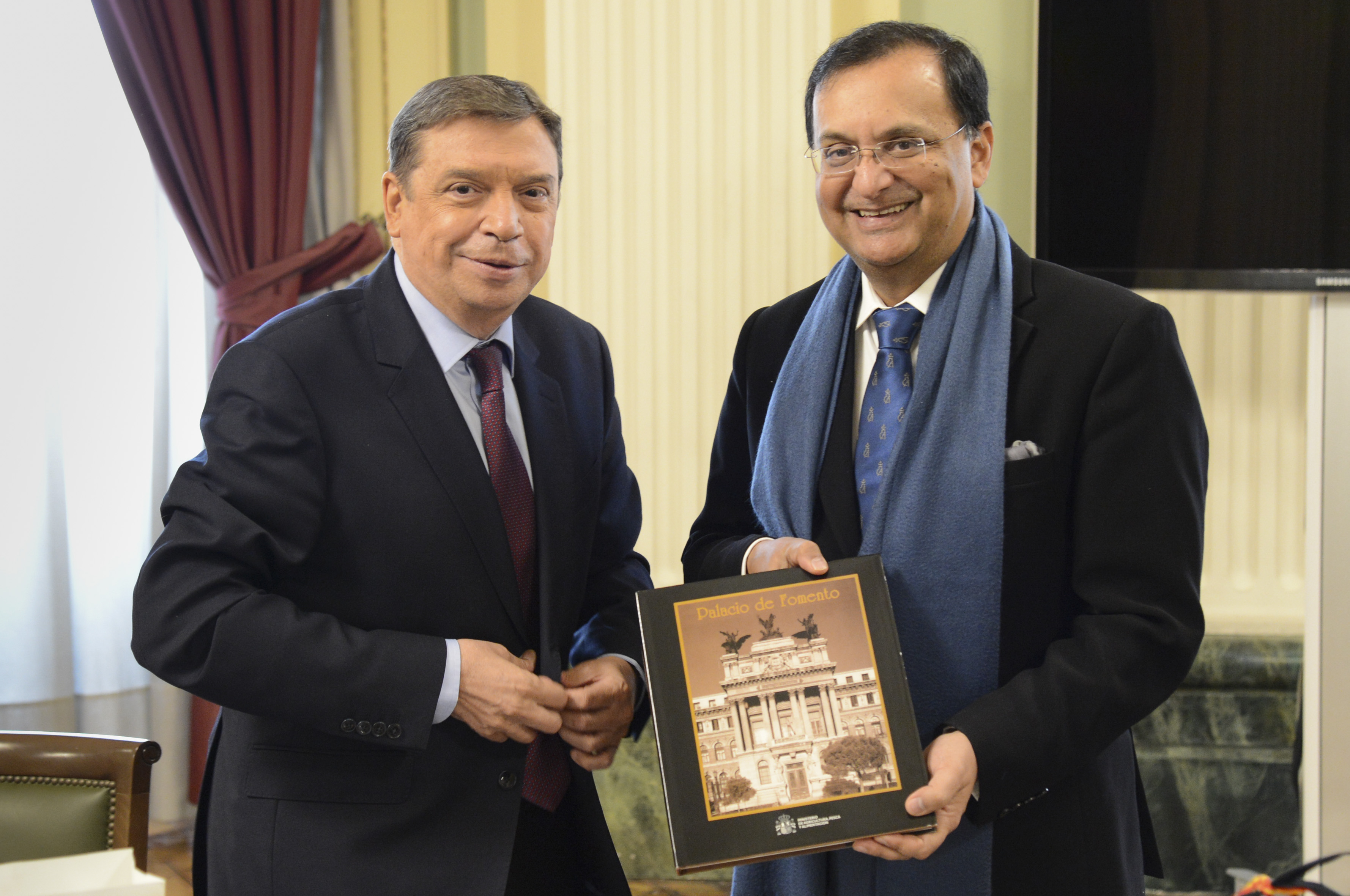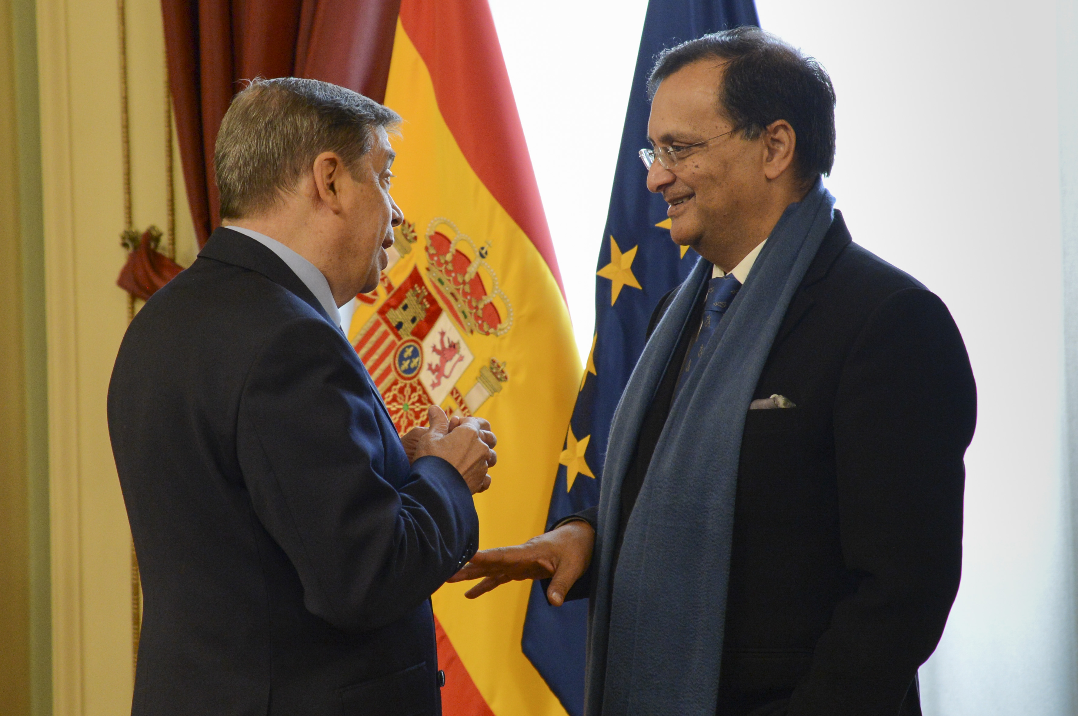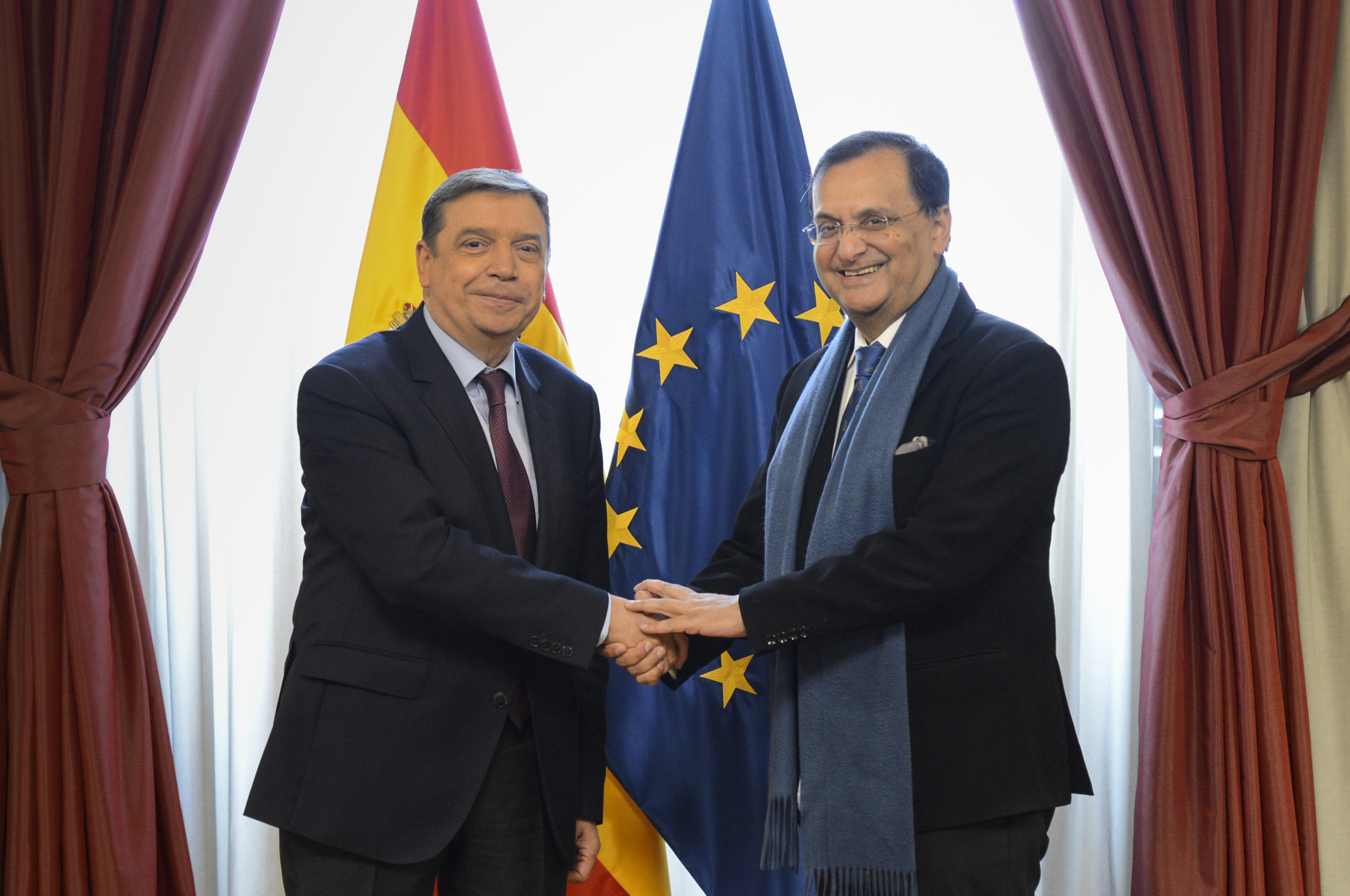 El ministro de Agricultura, Pesca y Alimentación, Luis Planas, se ha reunido hoy, en la sede del ministerio, con el embajador de la India, Dinesh K. Patnaik, con quien ha conversado sobre la situación del sector agroalimentario en la actual coyuntura internacional y la necesidad de estrechar la colaboración para garantizar la seguridad alimentaria.