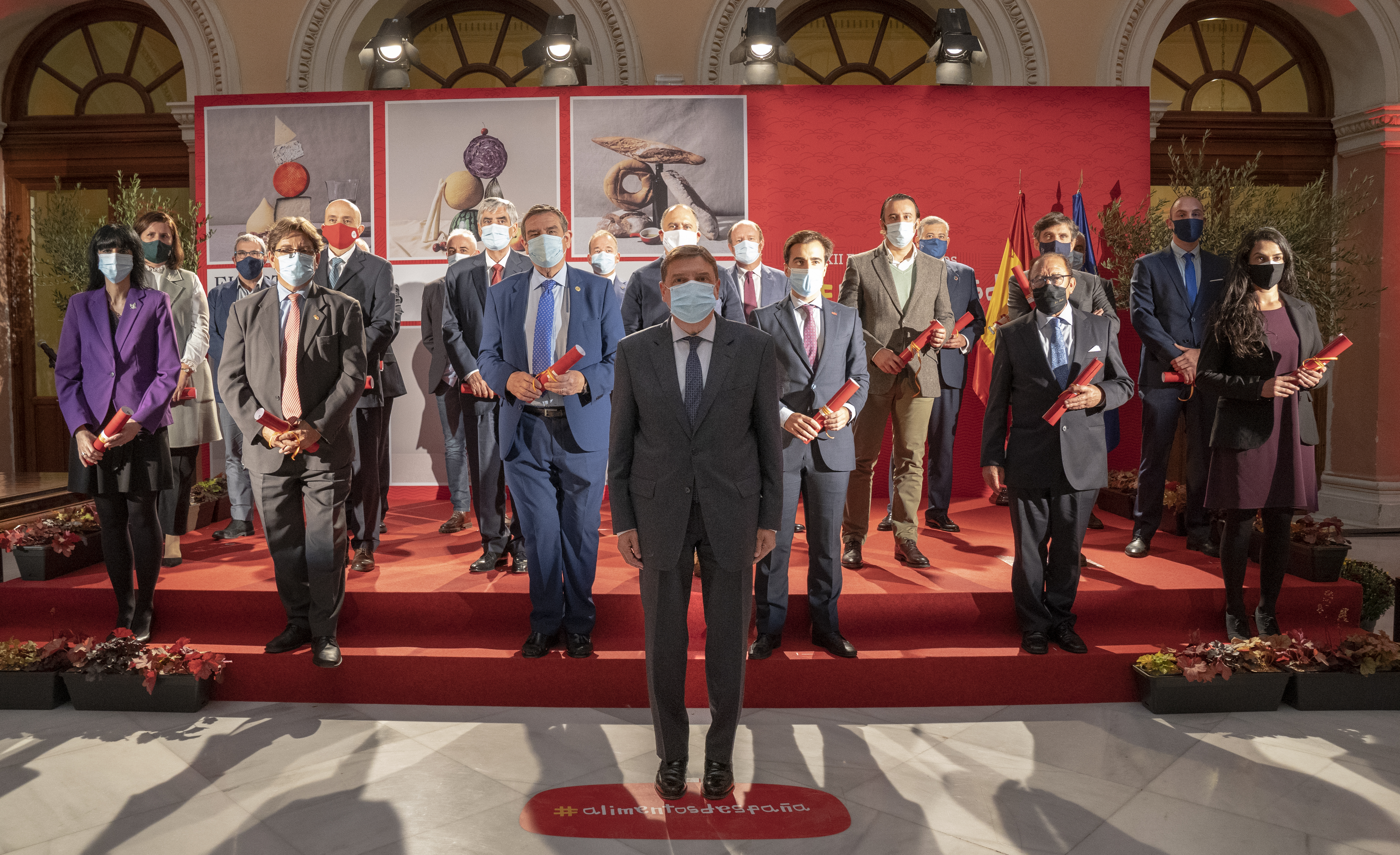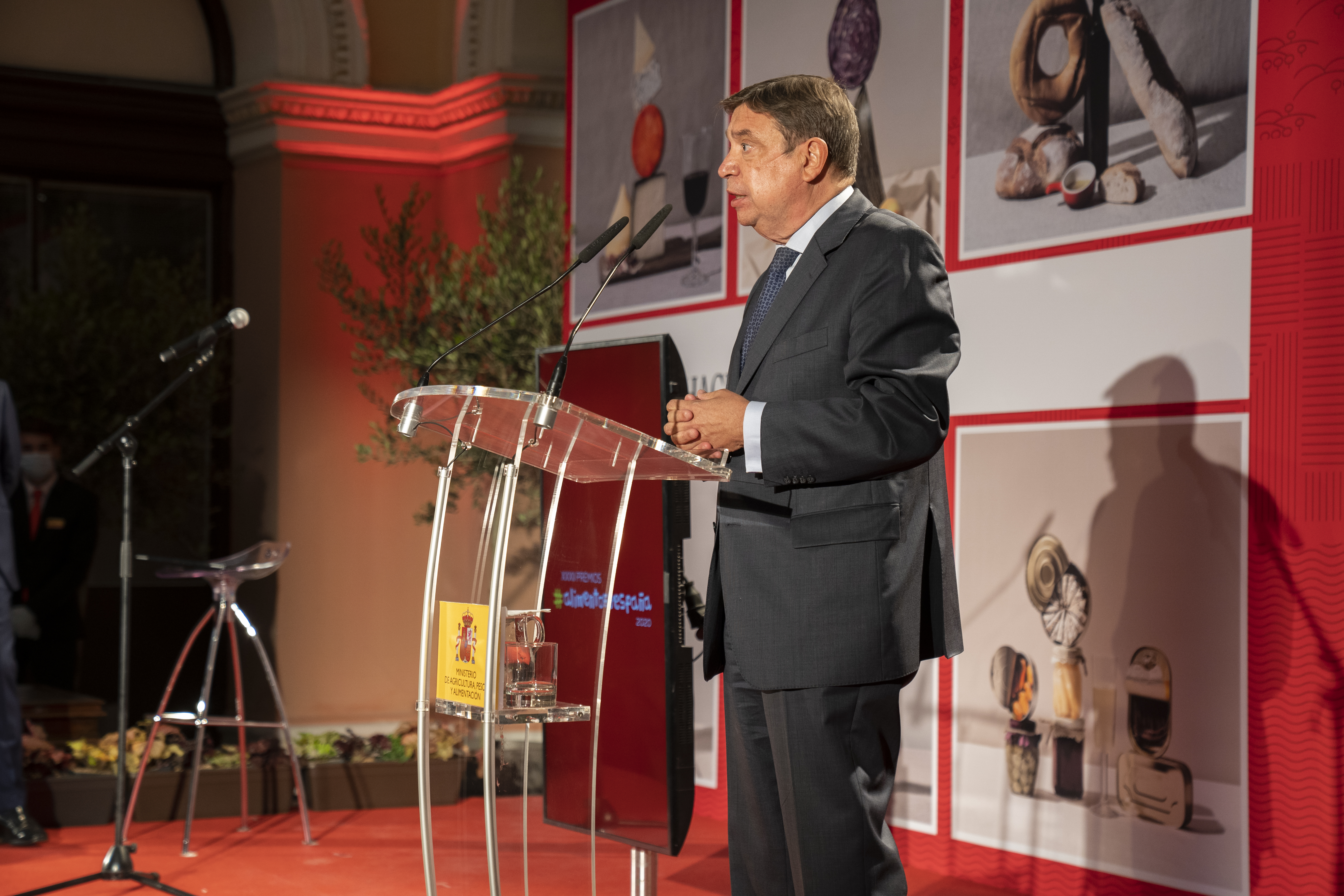 Y, entre todos ellos, el ministro ha querido destacar particularmente al sector de la restauración y a todo el movimiento solidario provocado por la crisis sanitaria, representado en los premios por la Federación Española de Bancos de Alimentos (Fesbal), que ha recibido el Premio Extraordinario Alimentos de España. Si hubiera un índice de felicidad, ha señalado el ministro, junto a nuestras familias y a la salud estarían los bares y restaurantes, que no solo crean empleo y valor, sino que nos unen a todos con su componente tradicional, cultural y social. Con respecto a los bancos de alimentos, Planas ha manifestado que lo que hacen es consecuencia directa de la situación que vivimos; “en momentos así es cuando las sociedades y los países se hacen grandes y es, en parte, gracias a la solidaridad”, ha indicado. También ha elogiado el comportamiento de toda la cadena alimentaria, que ha demostrado una gran capacidad de respuesta y de resistencia para mantener al máximo nivel su trabajo estratégico y esencial. El sector no sólo ha sido capaz de abastecer a la población española con alimentos de calidad y en cantidad suficientes, sino que, además, ha logrado incrementar sus exportaciones, sobre todo a terceros países. Ha mencionado el acuerdo político al que ha llegado el Consejo de Ministros de Agricultura de la Unión Europea, la víspera de esta ceremonia, en torno a la Política Agraria Común como la mejor manera de corresponder a ese buen comportamiento del sector agroalimentario de nuestro país. “Hemos conseguido una buena PAC para Europa y para España y a todos nos puede llenar de sincero orgullo”, ha estimado. Al respecto, ha indicado que se suele hablar de que las ayudas son para los agricultores y ganaderos, pero ha recordado que el beneficiario final “somos todos y cada uno de nosotros”. LA PROMOCIÓN DE LOS ALIMENTOS DE ESPAÑA Planas ha subrayado la idea de que tanto los alimentos y las bebidas como su elaboración son uno de nuestros grandes rasgos distintivos y uno de los hilos conductores por los que España puede hacer llegar al resto del mundo una imagen de país atractivo, eficaz y solvente. Ha hecho referencia a las campañas que lleva a cabo el ministerio para conseguir más valor para “el conjunto de nuestros productos” e impulsar la calidad y la capacidad de apertura de nuevos mercados que tienen los productores. España tiene razones para tener esperanza en el futuro y podremos pasar por momentos muy difíciles, pero sabremos levantarnos, ha concluido, para asegurar a continuación que el sector agroalimentario va a ser fundamental en la recuperación. NOTA: Libro con todos los premiados en archivo adjunto