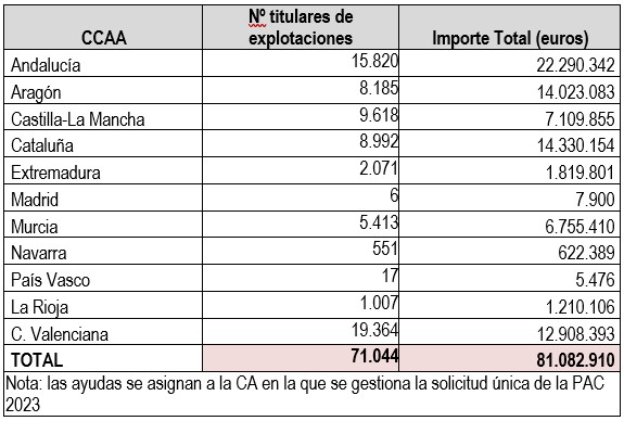 Esta ayuda se estableció mediante el Real Decreto-ley 4/2023, de 11 de mayo, por el que se adoptan medidas urgentes en materia agraria y de aguas en respuesta a la sequía y al agravamiento de las condiciones del sector primario derivado del conflicto bélico en Ucrania y de las condiciones climatológicas. El presupuesto total, 81.082.911 euros, está financiado con cargo a la reserva de crisis agrícola de la Unión Europea, conforme a la asignación establecida para España por el Reglamento (UE) 2023/1465 de la Comisión, de 14 de julio de 2023. Esta ayuda extraordinaria se concede de oficio a las superficies de frutales, y comprende los cultivos de frutales de pepita, de hueso, tropicales y/o cítricos, y/o de frutos de cáscara que hayan percibido ayudas directas en la campaña de la Política Agraria Común (PAC) 2023 y que se encuentren ubicadas en las zonas de afectación de la sequía establecidas en el Anexo II de la Orden APA/871/2023, de 20 de julio. Dichas zonas son: A. Zona de afectación alta: Provincias de Álava, Almería, Barcelona, Enclave de Treviño en Burgos, Girona, Granada, Huesca, La Rioja, Lleida, Málaga, Navarra, Tarragona, Teruel y Zaragoza B. Zona de afectación media: Provincias de Albacete, Alicante, Badajoz, Cádiz, Cáceres, Ciudad Real, Castellón, Córdoba, Cuenca, Guadalajara, Huelva, Jaén, Murcia, Sevilla, Toledo y Valencia. Las ayudas se conceden en los casos en los que el importe a percibir resulte igual o superior a los 200 euros, y hasta un máximo de 70 hectáreas por beneficiario, en las que se prioriza la superficie de frutales. Los importes unitarios establecidos por el Fondo Español de Garantía Agraria (FEGA) en base al listado provisional de beneficios y superficies publicado en esta resolución, alcanzan los valores siguientes: a) Para las explotaciones que cuenten con la mayor parte de su superficie de frutales y frutos de cáscara declarada en la campaña 2023 en las provincias recogidas dentro de la zona de afectación alta, se establece un importe unitario de: 270,902544 euros por hectáreas para frutales y 90,629215 euros por hectárea para frutos de cáscara. b) Para las explotaciones que cuenten con la mayor parte de su superficie de frutales y frutos de cáscara declarada en la campaña 2023 en las provincias recogidas dentro de la zona de afectación media, se establece un importe unitario de: 135,451272 euros por hectárea para frutales y 45,314608 euros por hectárea para frutos de cáscara. La distribución por comunidades autónomas de estas ayudas es la siguiente: La relación de titulares de explotaciones agrícolas que pueden optar a las ayudas, junto con el número de hectáreas de frutales y de frutos de cáscara computadas, así como la cuantía de la ayuda a percibir está disponible se puede consultar en el tablón de anuncios de las sede electrónica del FEGA. Los interesados disponen de un plazo de 10 días hábiles (del 3 al 16 de noviembre inclusive) para realizar alegaciones, que deberán presentarse exclusivamente a través del formulario de alegaciones de la sede electrónica del FEGA. Está previsto que los beneficiarios que estén al corriente de sus obligaciones tributarias y con la Seguridad Social y que no presenten alegaciones puedan percibir estas ayudas en la segunda quincena del mes de diciembre. Las ayudas agrícolas establecidas en el Real Decreto-ley 4/2023, de 11 de mayo y desarrolladas en la Orden APA/871/2023 de 20 de julio, en relación a los sectores de tierras de cultivo de secano, arroz y tomate de industria no son objeto de esta resolución provisional, ya que al tratarse de ayudas que tienen diferente fuente de financiación, en este caso, ayudas de Estado, deben ser tramitadas de forma independiente. Para estos sectores está previsto publicar el listado provisional de beneficiarios en el mes de diciembre. Hay disponible más más información en la página web del FEGA, en el siguiente enlace: https://www.fega.gob.es/es/ayudas-excepcionales-productores-sectores-agrarios/ayudas-sectores-agricolas