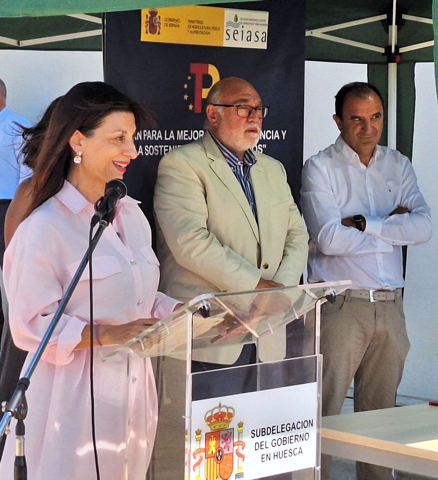 El acto ha estado presidido por la directora general de Desarrollo Rural, Innovación y Formación Agroalimentaria, Isabel Bombal, y el presidente de la comunidad de regantes Molinar del Flumen, José Ángel Lample. También ha contado con la presencia del presidente de la Sociedad Estatal de Infraestructuras Agrarias (Seiasa), Francisco Rodríguez.