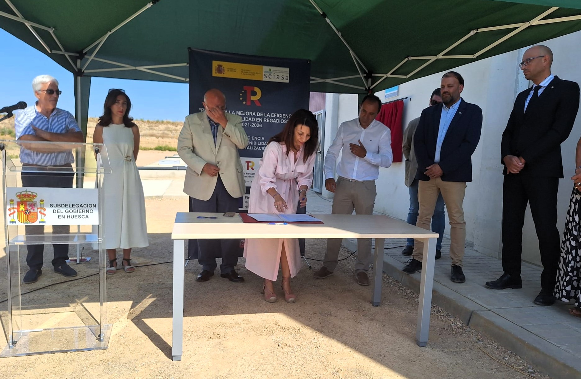 Esta actuación beneficia a 351 regantes que cultivan 3.643 hectáreas de los municipios de Barbués, Sangarrén, Torres de Barbués y Aluminente, en la provincia de Huesca, y está financiada con cargo a los fondos europeos del Plan de Recuperación, Transformación y Resiliencia (PRTR).