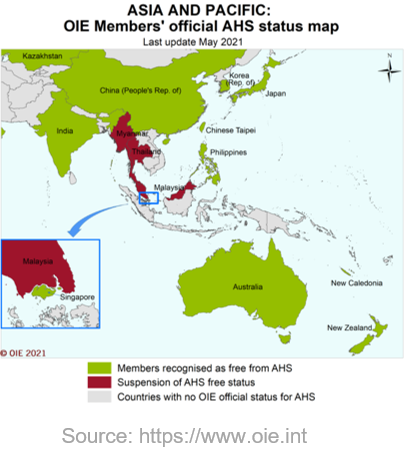 En febrero de 2020 se notificó a la OIE el primer brote de Peste equina en Tailandia, producido por el serotipo 1 y que afectó a 191 equinos y causó 175 muertes.