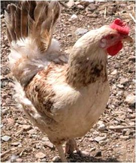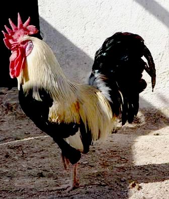 Otras Características: Los gallos de esta raza se caracterizan por presentar una cabeza grande y ancha. Cara lisa y de color rojo vivo. Cresta sencilla, grande, derecha y con dientes bien definidos, en número de 5 a 7 y perpendiculares a la curva de la cabeza, con el espolón pegado a la línea del cuello y de color rojo vivo. Barbillas grandes y colgantes, con el borde inferior redondeado y rojo vivo. Orejillas moderadamente alargadas, pegadas a la cara y de color blanco. Pico mediano, fuerte y curvado, de color amarillo.
