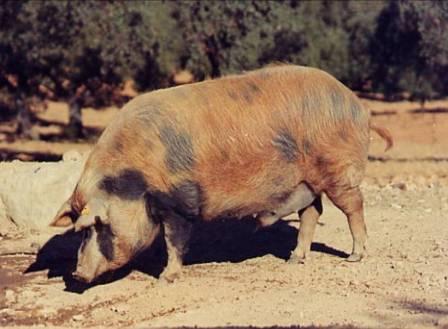 Origen Geográgico (península Ibérica). Existen referencias anteriores a los romanos que mencionan los perniles de esta raza y el medio en el que se produce: "las dehesas de iberia".