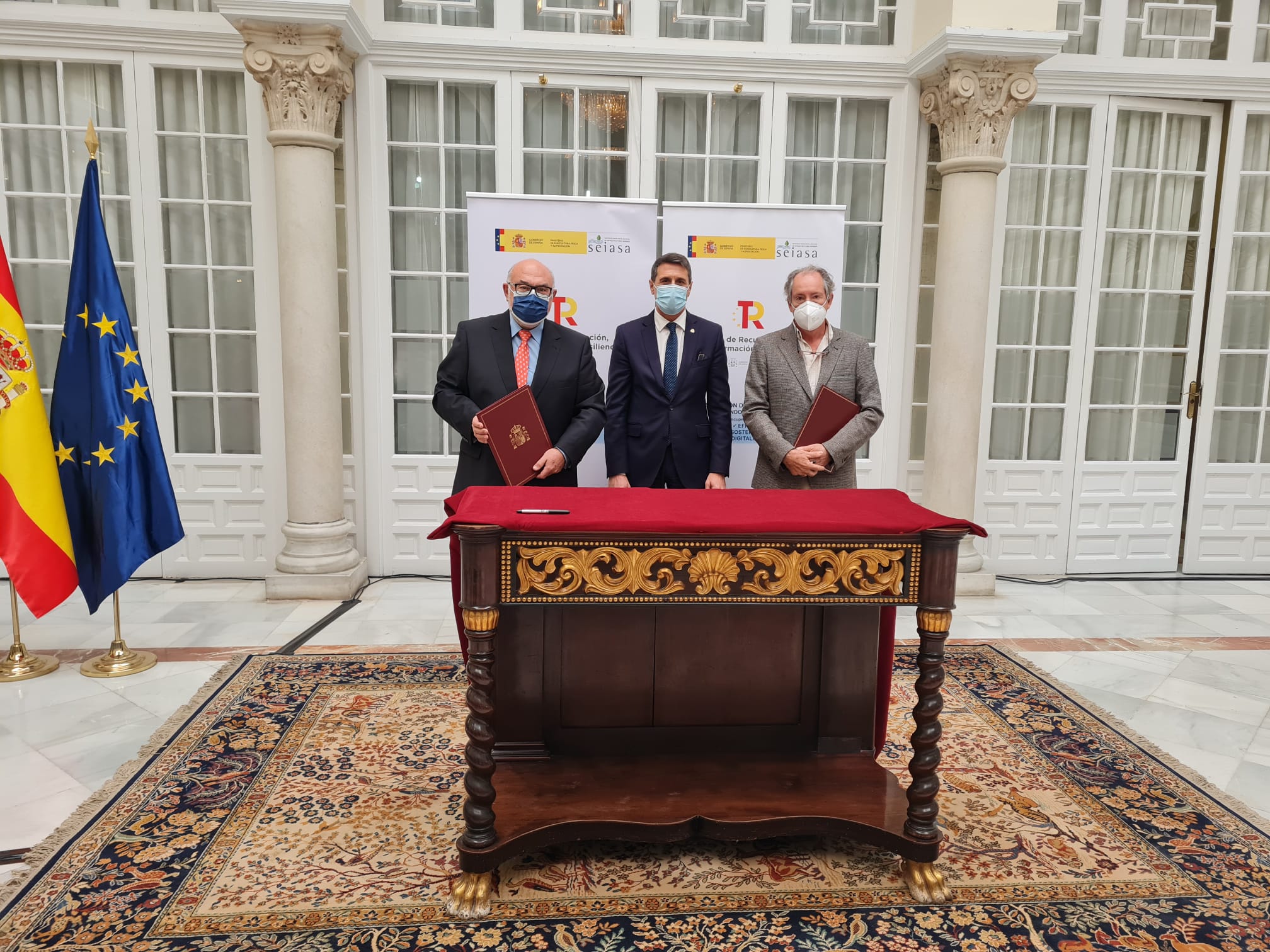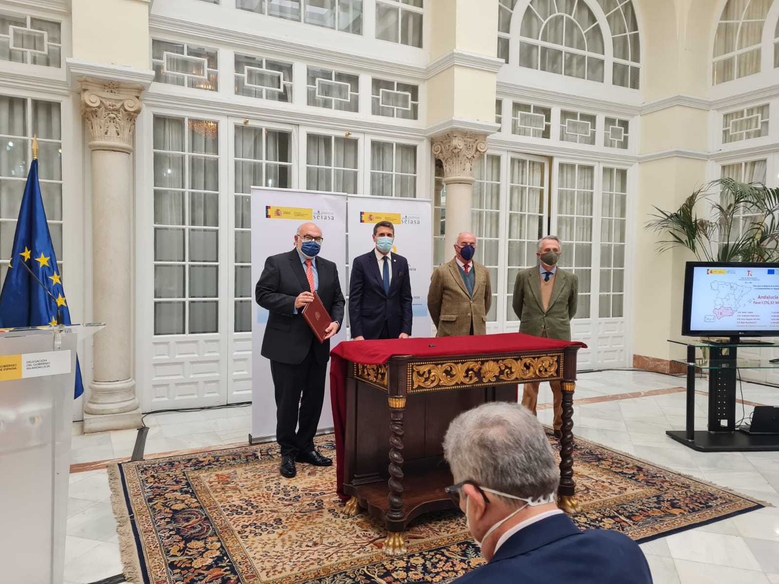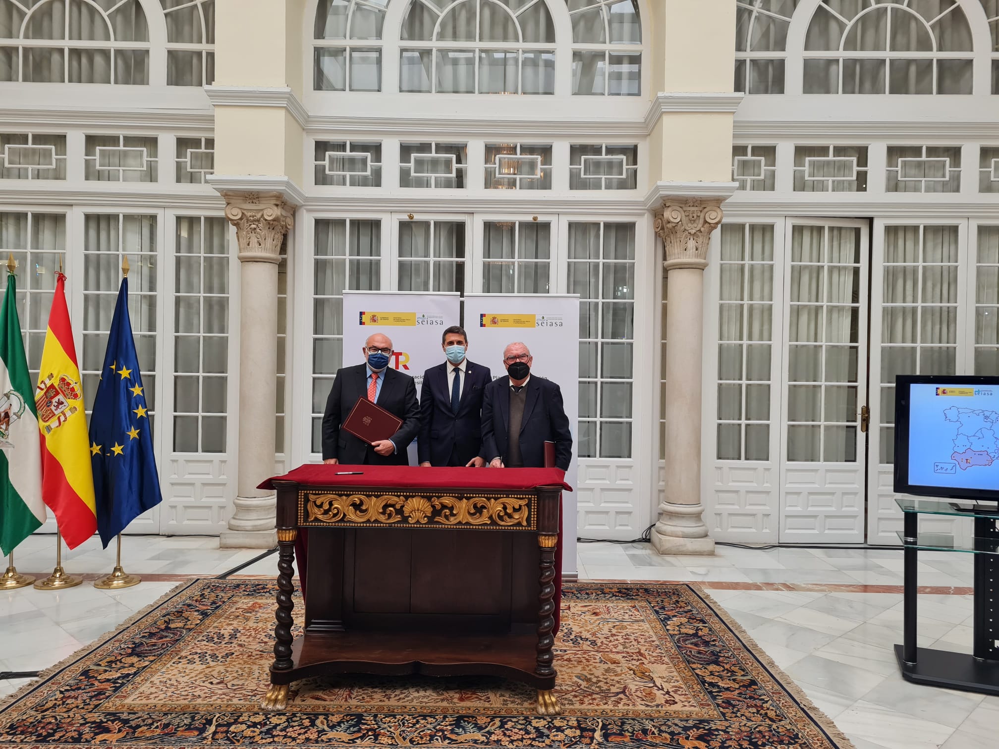 Las actuaciones comprometidas se realizarán con cargo al “Plan para la mejora de la eficiencia y la sostenibilidad en regadíos” del Plan de Recuperación, Transformación y Resiliencia de la Economía Española, Fase I, que en el conjunto de Andalucía tiene previsto invertir 76.316.513,20 euros (IVA no incluido) en 15 proyectos. El presidente de Seiasa, Francisco Rodríguez Mulero, ha firmado los correspondientes convenios con los presidentes de las comunidades de regantes de Genil-Cabra (Córdoba), Julio Valcuende Lajusticia; de Andévalo Pedro Arco (Huelva), Juan Antonio Millán Jaldón; de El Viar (Sevilla), Antonio Muñoz Cabello y de Bajo Guadalquivir (Sevilla), Juan Mora-Figueroa Gayán. El acto ha contado con la presencia del delegado del Gobierno en Andalucía, Pedro Fernández Peñalver. El objetivo de las actuaciones, que afectarán a 78.052 hectáreas de regadíos y beneficiarán a 9.094 regantes, es la modernización de los sistemas de riego para reducir la dependencia de energías fósiles, mediante la habilitación de instalaciones solares fotovoltaicas de autoconsumo que también permitan ahorrar costes energéticos a los regantes, al tiempo que se reduce la emisión de CO2 a la atmósfera. También está prevista la mejora de la eficiencia hídrica con la instalación de sistemas de telecontrol de la gestión del riego. C.R. GENIL-CABRA El “Proyecto de reducción de la dependencia energética y digitalización de la zona regable Genil-Cabra” cuenta con un presupuesto de 7.145.807,11 euros (IVA no incluido) y afectará regadíos situados en los municipios de Puente Genil, Santaella, Montilla, Montalbán, La Rambla, y Aguilar de la Frontera, en la provincia de Córdoba; y de Écija y Estepa, en Sevilla. La modernización contempla la construcción de una planta solar fotovoltaica de autoconsumo, así como la digitalización del sistema de riego con la instalación de equipos de telemedida y telegestión, y un centro de telecontrol, que gestionará un total de 23.946 hectáreas y del que se beneficiarán 2.148 regantes. C.R. ANDÉVALO PEDRO ARCO De similares características es el “Proyecto de instalación solar fotovoltaica de autoconsumo para la disminución de la dependencia energética en la Comunidad de Regantes Andévalo Pedro Arco (Huelva)”, al que se le ha asignado un presupuesto de 3.180.000 euros (IVA no incluido). Afectará a 1.342 hectáreas de regadíos y beneficiará a 10 regantes en los municipios de Sanlúcar de Guadiana y Villanueva de los Castillejos, en la provincia de Huelva. C.R. EL VIAR El presupuesto del “Proyecto de modernización de los riegos del Viar: planta fotovoltaica de 4 MWP y mejora de la eficiencia energética de las estaciones de bombeo (Sevilla)” asciende a 4.091.600 euros (IVA no incluido). Estima actuar sobre 11.500 hectáreas correspondientes a 1.800 regantes en el municipio de Alcalá del Río, en la provincia de Sevilla. Al igual que los anteriores proyectos, tiene previsto instalar una planta solar fotovoltaica para abastecer a las instalaciones de riego existentes. C.R. DEL BAJO GUADALQUIVIR El “Proyecto de disminución de la dependencia energética mediante autoproducción de energía fotovoltaica en la zona regable del Bajo Guadalquivir (Sevilla)” tiene un presupuesto de 1.484.000 euros (IVA no incluido) y abastecerá a 41.264 hectáreas correspondientes a 3.315 regantes en los municipios de Lora del Río, Puebla del Río, Los Palacios y Villafranca, Utrera, Las cabezas de San Juan y Lebrija, en la provincia de Sevilla. En este caso se prevé construir tres instalaciones fotovoltaicas asociadas a los bombeos, instalar sistemas de telecontrol del riego e incorporar medidas de recuperación y seguimiento ambiental como la instalación de cajas nido para la avifauna de la zona y siembra de herbáceas. PLAN DE RECUPERACIÓN FASE I Estas obras se realizarán con fondos Next Generation de la Unión Europea y su carácter público-privado supone que la aportación pública será de un máximo del 80% del coste de los gastos elegibles, mientras que las comunidades de regantes objeto de la actuación aportarán el resto. Este programa, que constituye el capítulo inversor más importante de los fondos del PRTR que gestiona el MAPA, prevé una inversión pública en el conjunto de España de 563 millones de euros, con lo que se espera modernizar más de 100.000 hectáreas de regadíos.