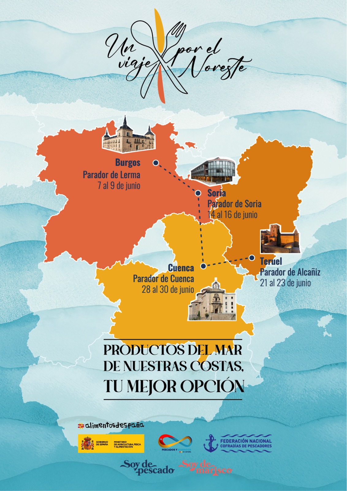 El año 2023 cerró con el dato más bajo en volumen de toda la serie histórica desde 2008, con un descenso acumulado en esos 15 años de 34,4 % en el volumen de compras. Todos los segmentos han visto un retroceso de compras, a excepción de las conservas de pescado y molusco, que se han mantenido estables desde 2022 y han crecido un 5,5% desde 2008. Las caídas más destacadas han sido las de mariscos, moluscos y crustáceos frescos y congelados, con unas reducciones desde 2022 del 48,5 % y del 40,8 % respectivamente. También han disminuido las compras de pescado fresco (38,9 %) y congelado (40,1 %). Sin embargo, aunque la evolución en compras del pescado congelado es desfavorable, su valor ha logrado crecer un 2,3 %. Consciente de estos datos y preocupado por la disminución de una proteína de calidad tan importante, procedente de producciones cada vez más sostenibles, el Ministerio de Agricultura, Pesca y Alimentación ha incluido, desde 2019, en la estrategia de promoción de los “Alimentos de España” al sector del pescado. Así, se lanzó la campaña específica “Un país infinito en productos del mar y recetas”, con el objetivo de concienciar a los ciudadanos sobre la importancia de consumir productos del mar, habiéndose lanzado la campaña En esta estrategia, una de las herramientas más efectivas en cuanto a promoción alimentaria es el establecimiento de convenios con diferentes asociaciones pesqueras para poner en valor la calidad y las excelentes propiedades de los diferentes alimentos pesqueros y potenciar su desarrollo comercial. Uno de estos acuerdos es el suscrito con la Federación Nacional de Cofradías de Pescadores para poner en marcha distintas acciones de promoción en mercados de abastos, escuelas de hostelería y cadenas de restauración, bajo el lema “Los productos del mar de nuestras costas, tu mejor opción”. Durante el mes de junio se realizarán jornadas gastronómicas en los paradores nacionales de turismo de Lerma (Burgos, del 7 al 9 de junio), Soria (15-16), Alcañiz (Teruel, 21-23) y Cuenca (28-30). Estas jornadas están dedicadas a los productos pesqueros de diversas cofradías del Mediterráneo y el Cantábrico. Programadas para los fines de semana del mes de junio busca destacar la riqueza y variedad de los pescados y mariscos provenientes de las costas españolas. España es un país con profundas tradiciones en las artes de la pesca y en las manifestaciones culinarias derivadas de los productos del mar. En las jornadas participarán cofradías de pescadores de Calpe, Santa Pola (Alicante), Gandía (Valencia), Vinaroz (Castellón), Portosín (La Coruña), Luarca (Asturias) y Colindres (Cantabria) y Santa Pola. Con esta iniciativa, se pretende, además, proyectar los valores del trabajo de la gente del mar e incrementando el aprecio y el prestigio de unas profesiones duras y arriesgadas que proporcionan una de las mejores fuentes de proteínas para la dieta humana. Los chefs de los paradores mencionados se encargarán de elaborar diferentes menús con estos productos y mostrando a los comensales las numerosas posibilidades de preparación de los productos del mar. Durante el mes de mayo también se realizaron jornadas educativas en las escuelas de hostelería y mercados de abastos de Burgos, Zaragoza y Teruel. En estas jornadas se presentan nuevas formas prácticas de elaboración de recetas de pescado. Gracias al convenio con la Federación de Cofradías de Pescadores, las escuelas de hostelería CIFP La Flora (Burgos), TOPI (Zaragoza) y EHP (Teruel) contaron con una demostración de diferenciación de productos pesqueros para que el alumnado pudiera distinguir y valorizar las especies comerciales, y una clase con un cocinero de embarcación o tradicional donde realizaron tapas a base de especies pesqueras que posteriormente se degustaron en los mercados de abastos de cada ciudad.